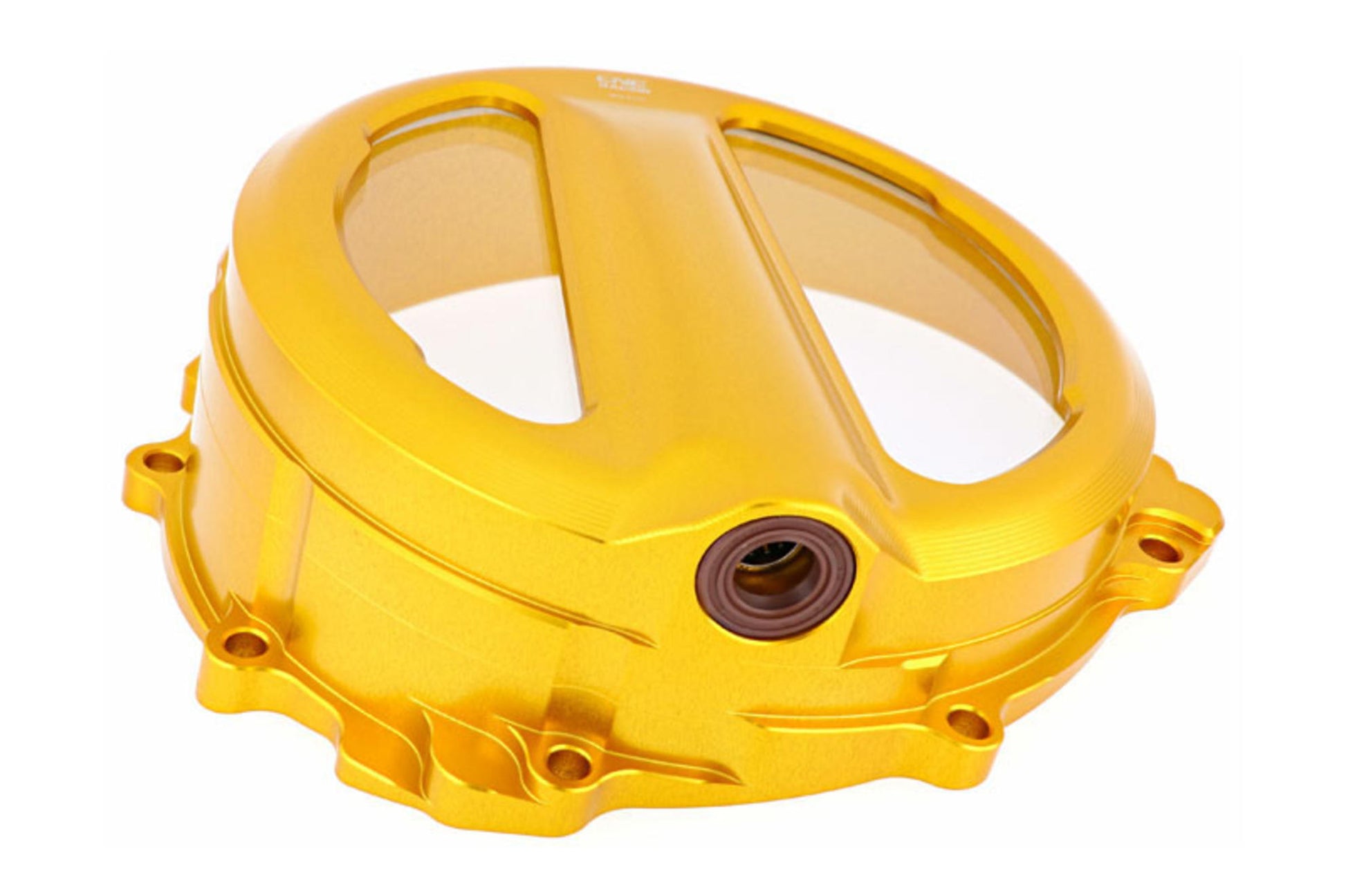 Carter trasparente per frizioni ad olio MV Agusta 3 cilindri, realizzato in alluminio lavorato dal pieno.