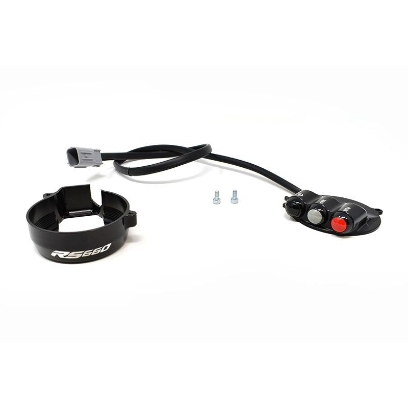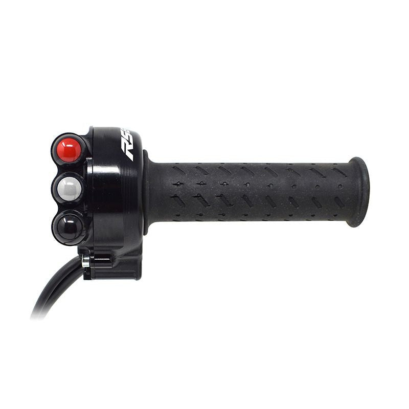 Throttle twist grip with integrated controls for Aprilia RS 660.
