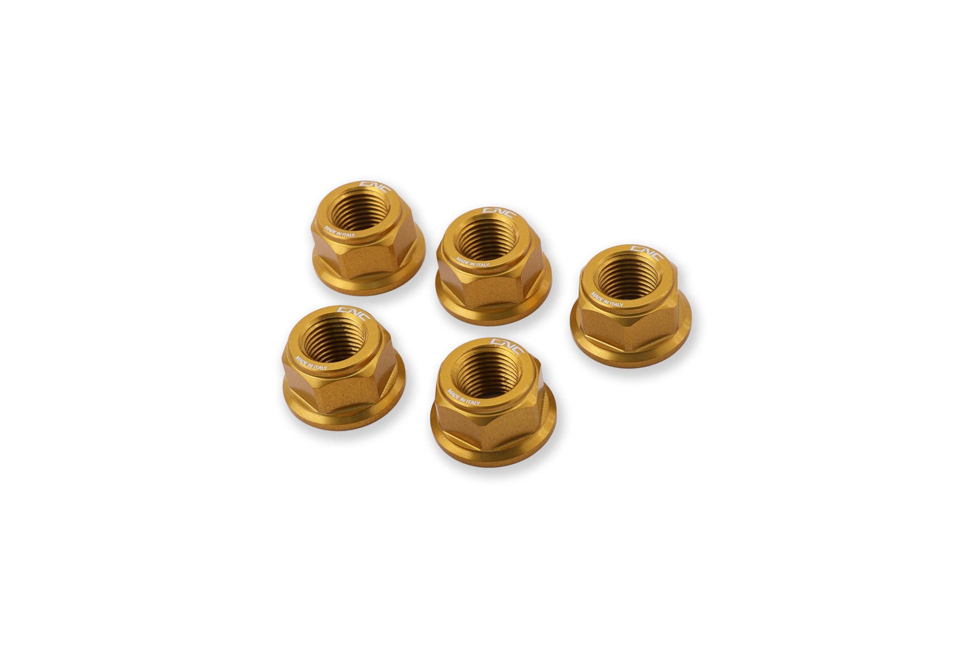 Dadi flangia portacorona lavorati dal pieno in lega leggera con successiva anodizzazione superficiale.