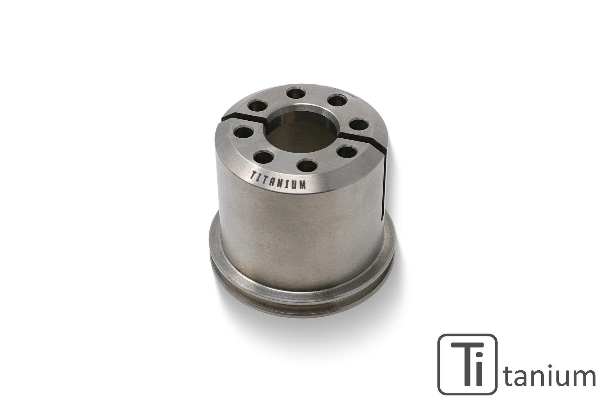 Ghiera di sterzo lavorata dal pieno in Titanio grado 5 leggero, robusto e inossidabile.