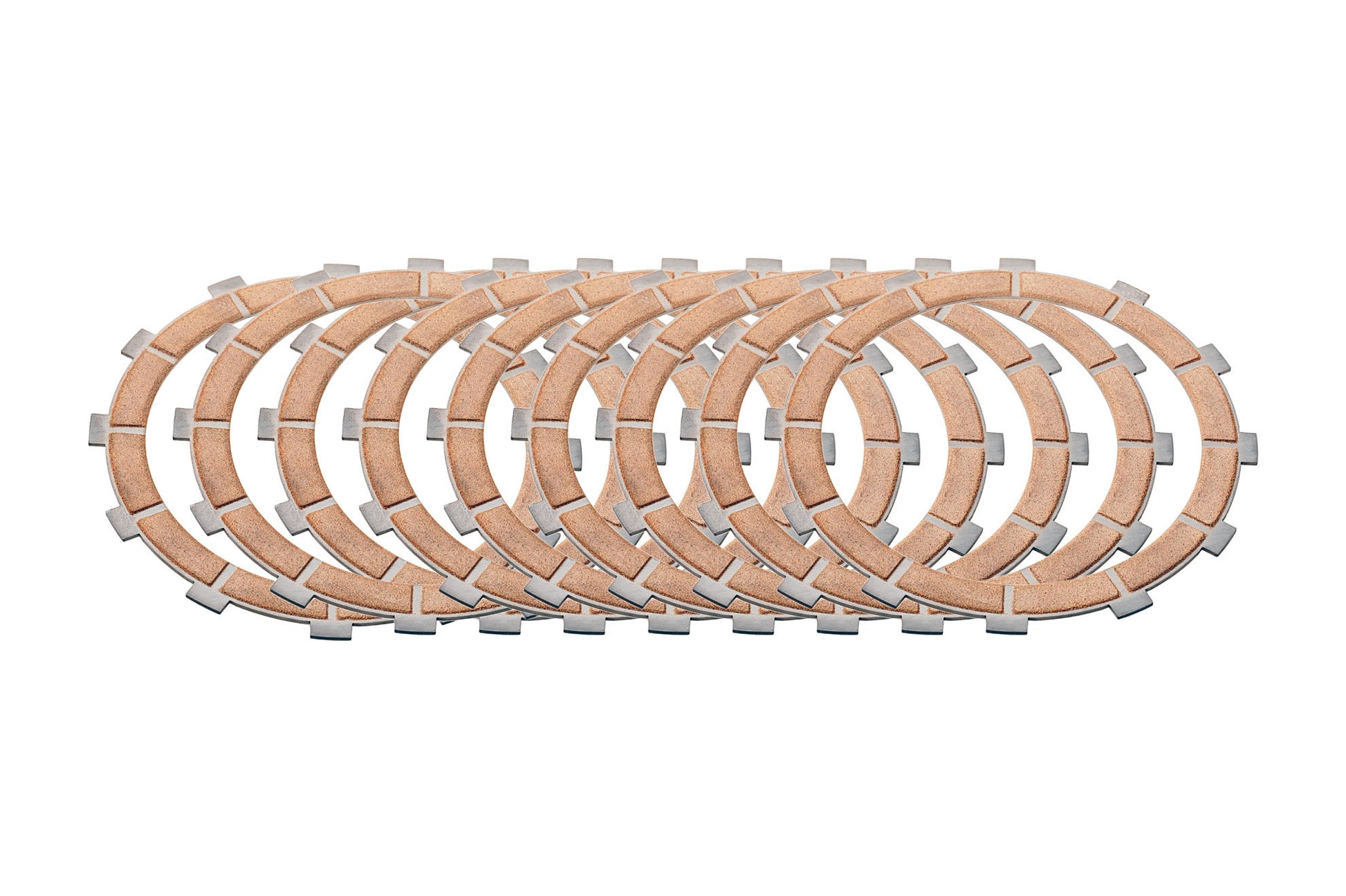 Le serie dischi frizione sono realizzate con materiali speciali di ultima generazione. I dischi sono stati realizzati con un innovativo materiale sinterizzato od organico, mentre l'anima dei dischi in speciale lega d'acciaio al carbonio oppure in alluminio.