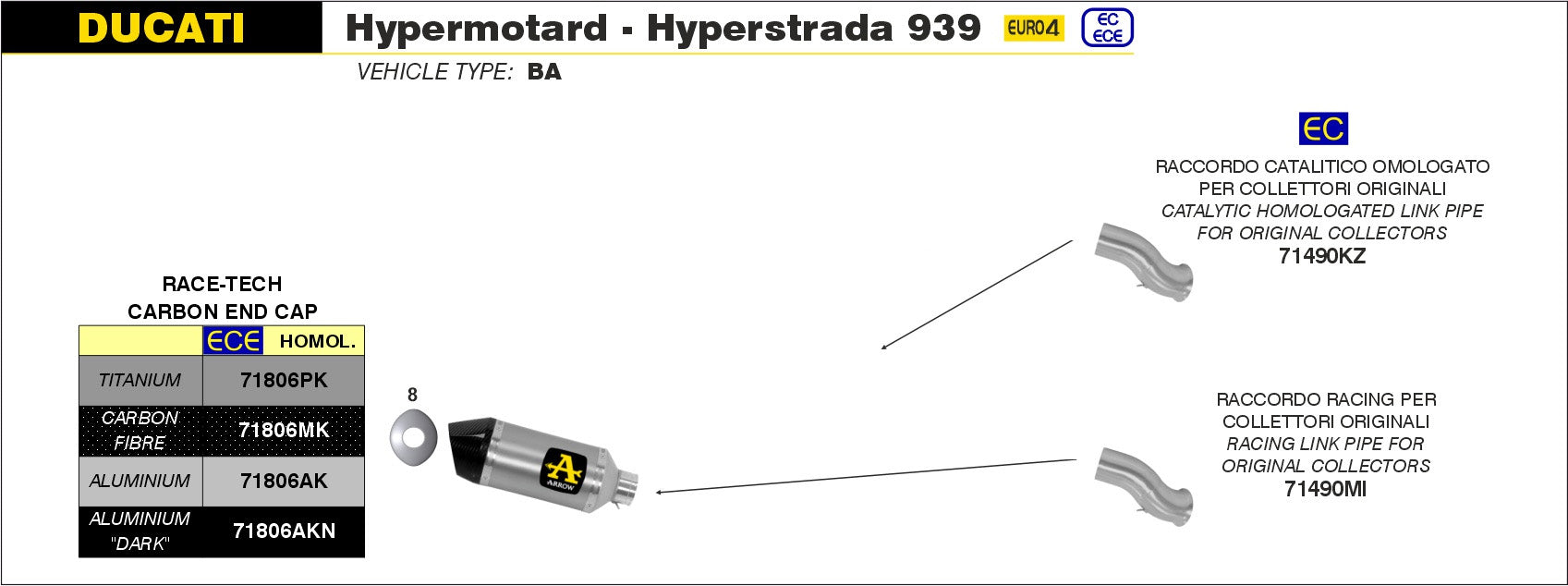 KIT SILENCER APPR. EC+ECE RACE-TECH TIT-CARB ARROW DUCATI HYPERMOTARD 939 16-18