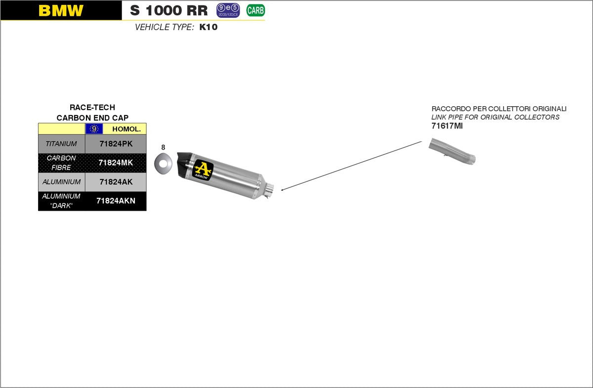 KIT SILENCER APPROVED RACE-TECH TITANIUM-CARBON ARROW BMW S 1000 RR 2015-16