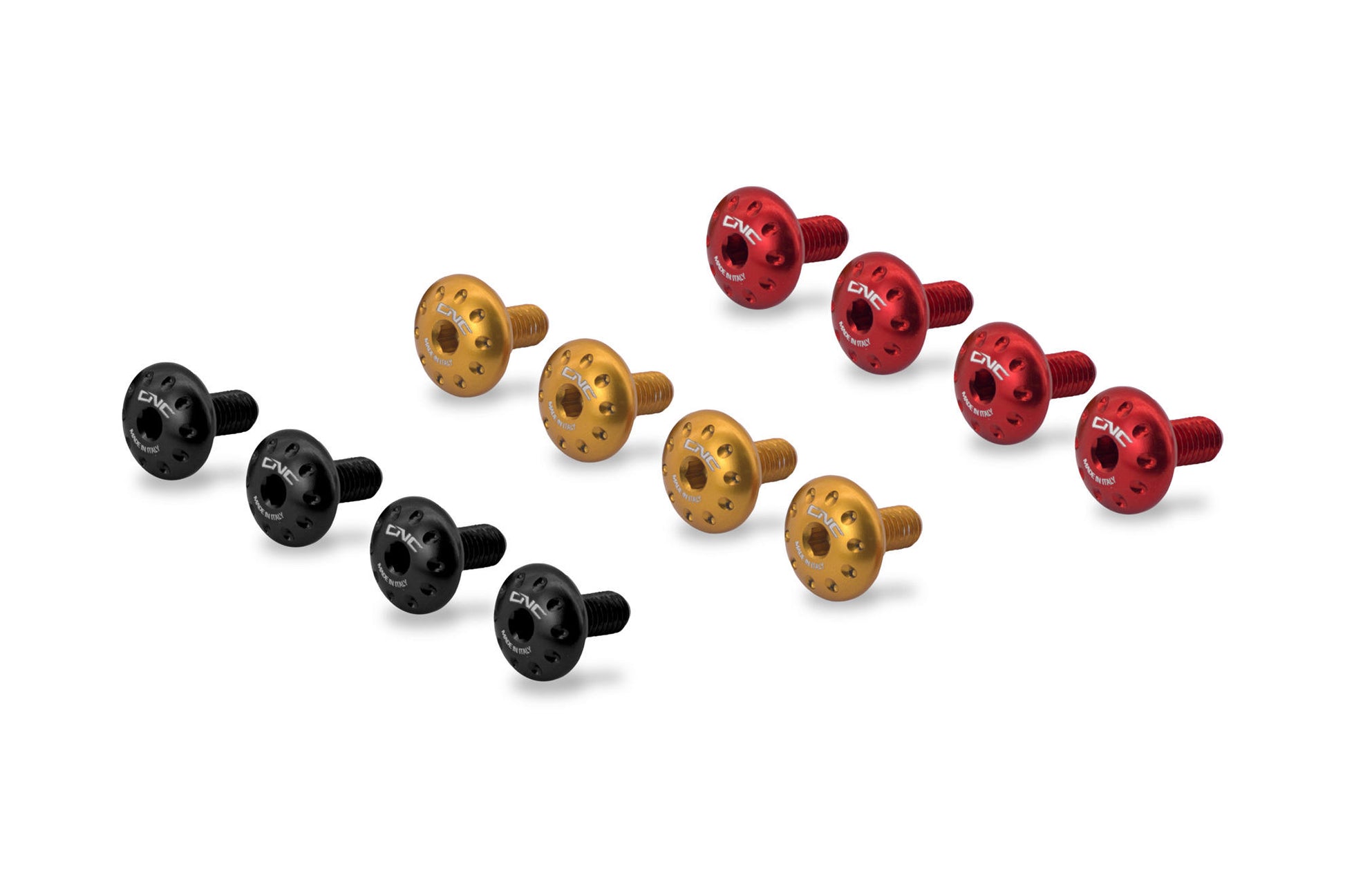 Realizzate dal pieno in lega leggera con successivo trattamento di anodizzazione superficiale, le viti sostituiscono le originali in ferro spesso arrugginite o ossidate.
