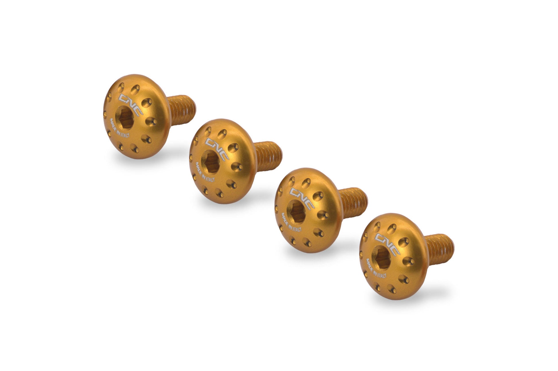Realizzate dal pieno in lega leggera con successivo trattamento di anodizzazione superficiale, le viti sostituiscono le originali in ferro spesso arrugginite o ossidate.