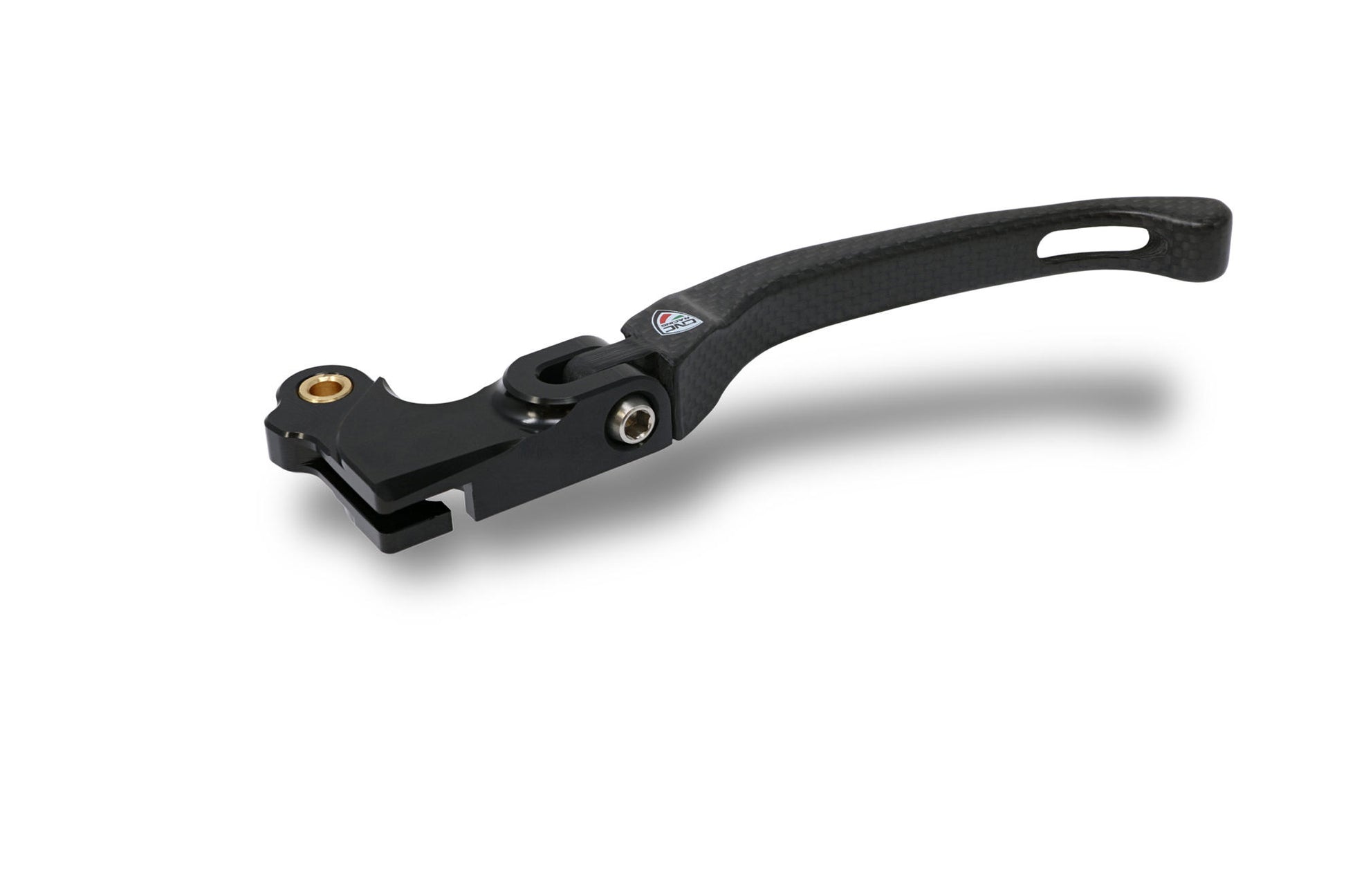 Perfettamente compatibili con i comandi frizione originali, le leve Race Carbon hanno l'attacco in alluminio lavorato dal pieno con successiva anodizzazione della superfice e viteria in acciaio, mentre la leva snodabile è interamente realizzata in fibra di carbonio. La leva ribaltabile previene la rottura in caso di caduta.