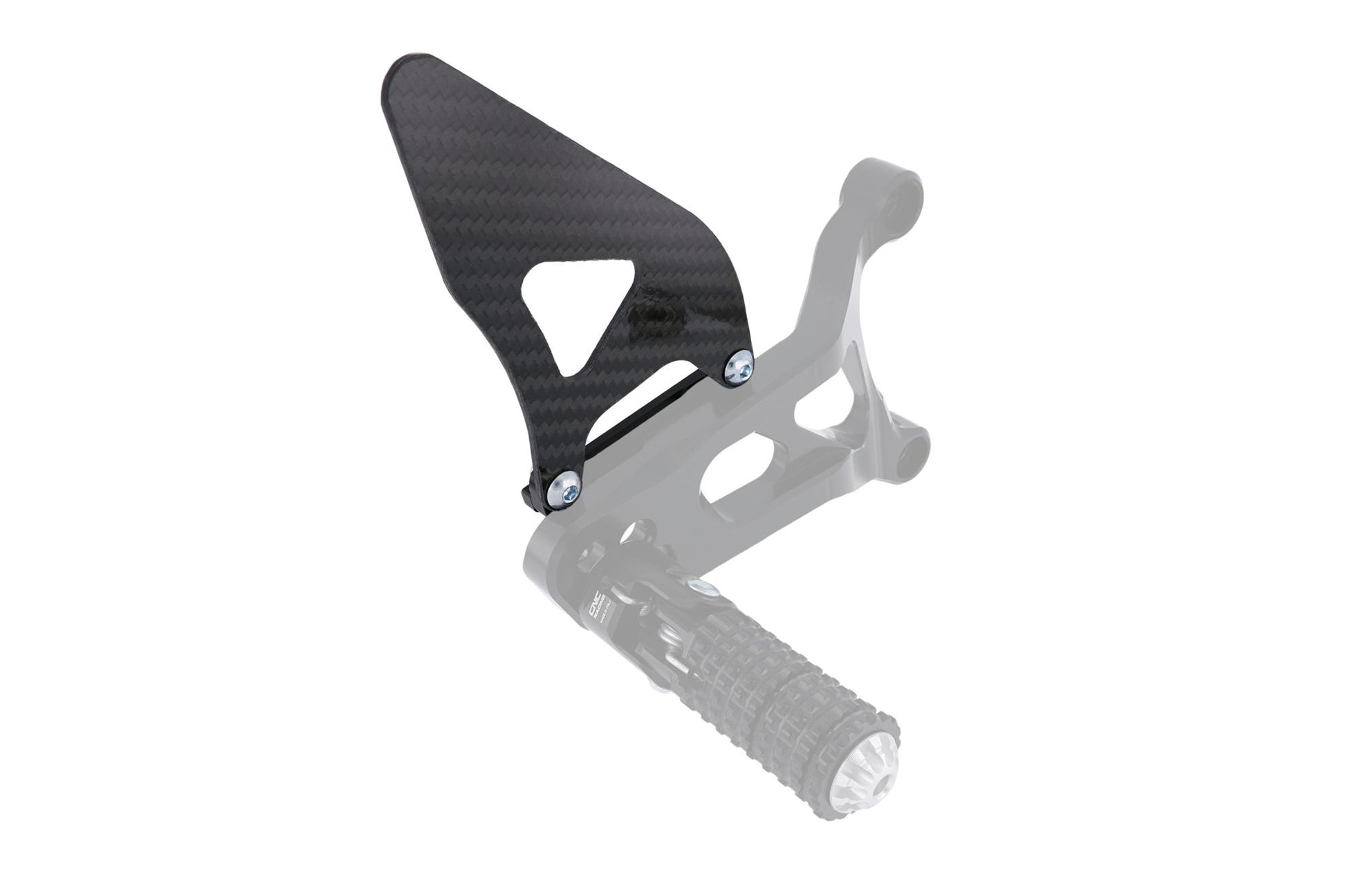 Kit paratacchi lato destro per le pedane CNC Racing modello PE227B / PE227RS. Permette il montaggio di scarichi bassi aftermarket che non utilizzano il paracalore originale.