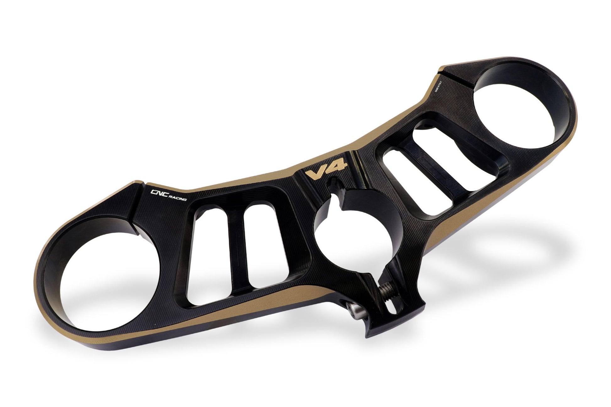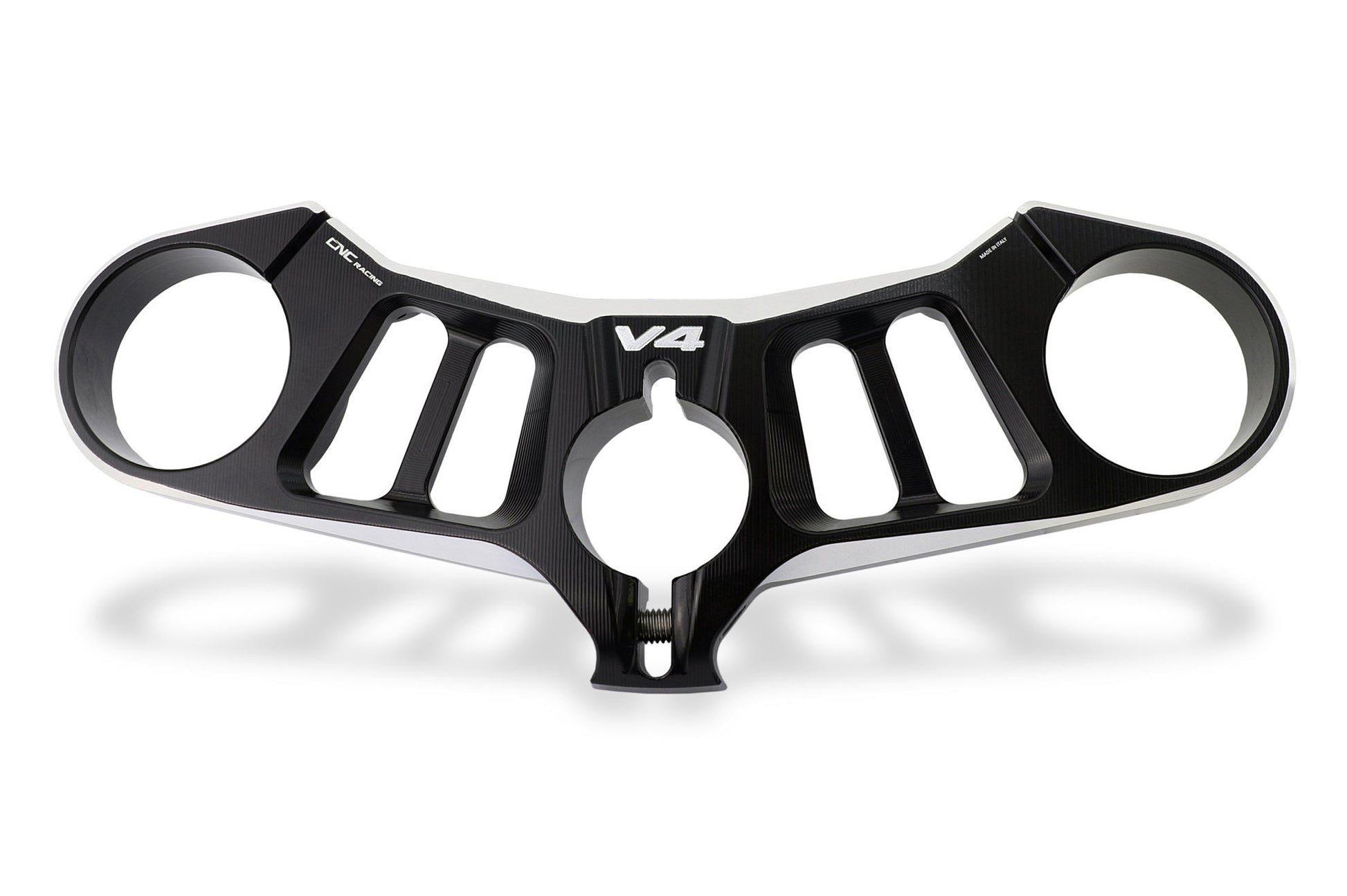 Piastra di sterzo superiore per Ducati Panigale V4 realizzata dal pieno in lega leggera con successiva anodizzazione superficiale, ora anche nell'esclusiva versione Bicolore.