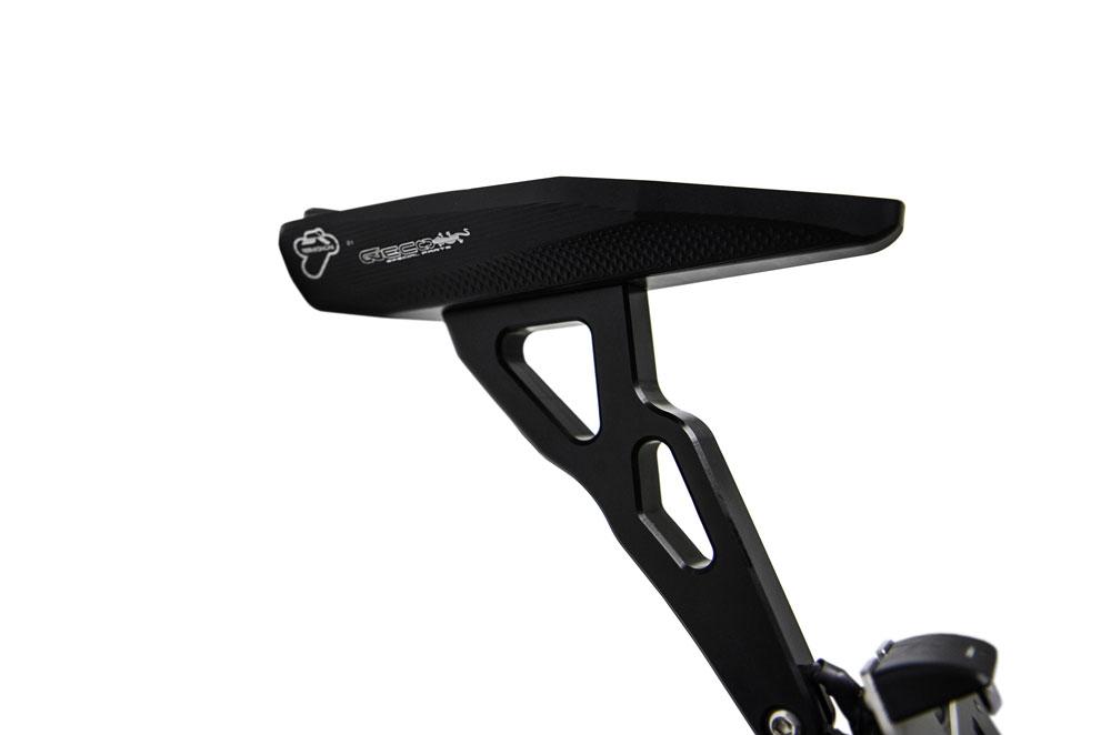 The racing license plate holder, code D170PT , is characterized by an aluminum structure, with black anodized bracket and cover and side arrows .