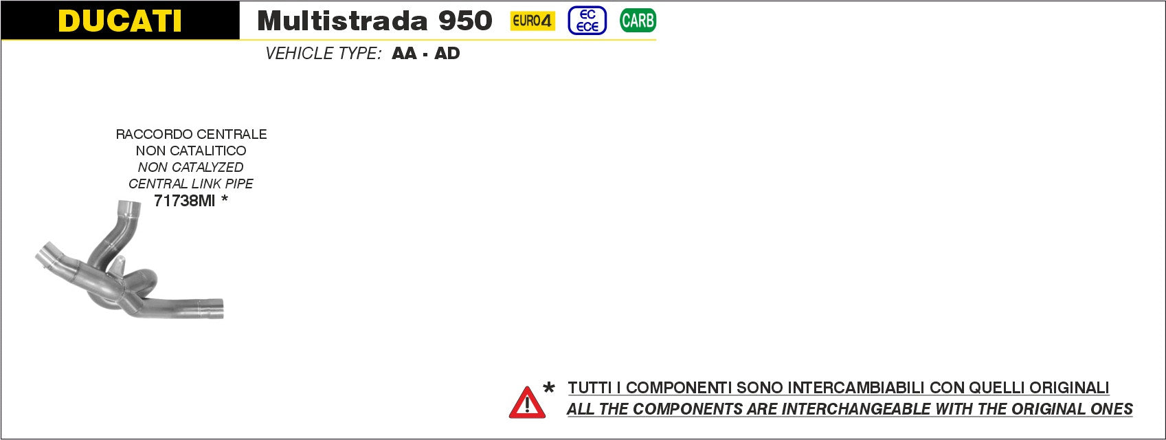 NON-CATALYTIC CENTRAL FITTING ARROW DUCATI MULTISTRADA 950 2019-20