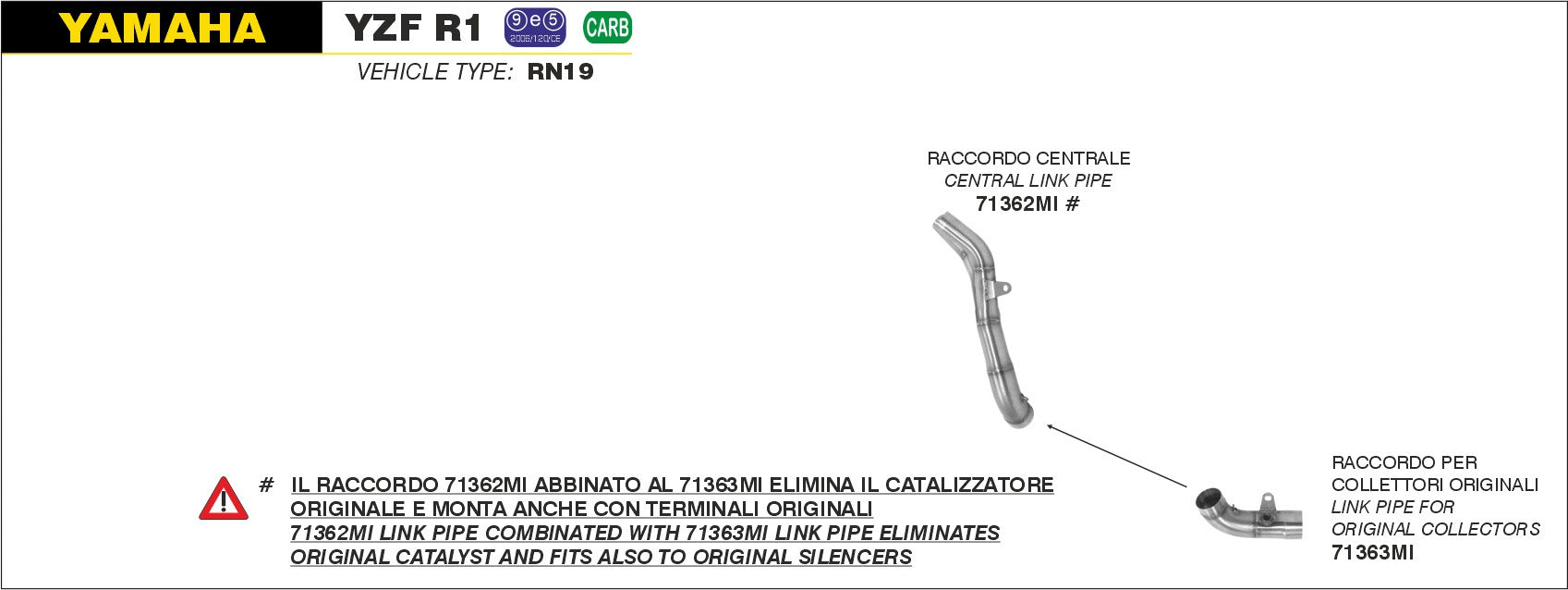 MID PIPE + CENTRAL FITTING ORIGINAL ARROW YAMAHA YZF 1000 R1 2007-2008