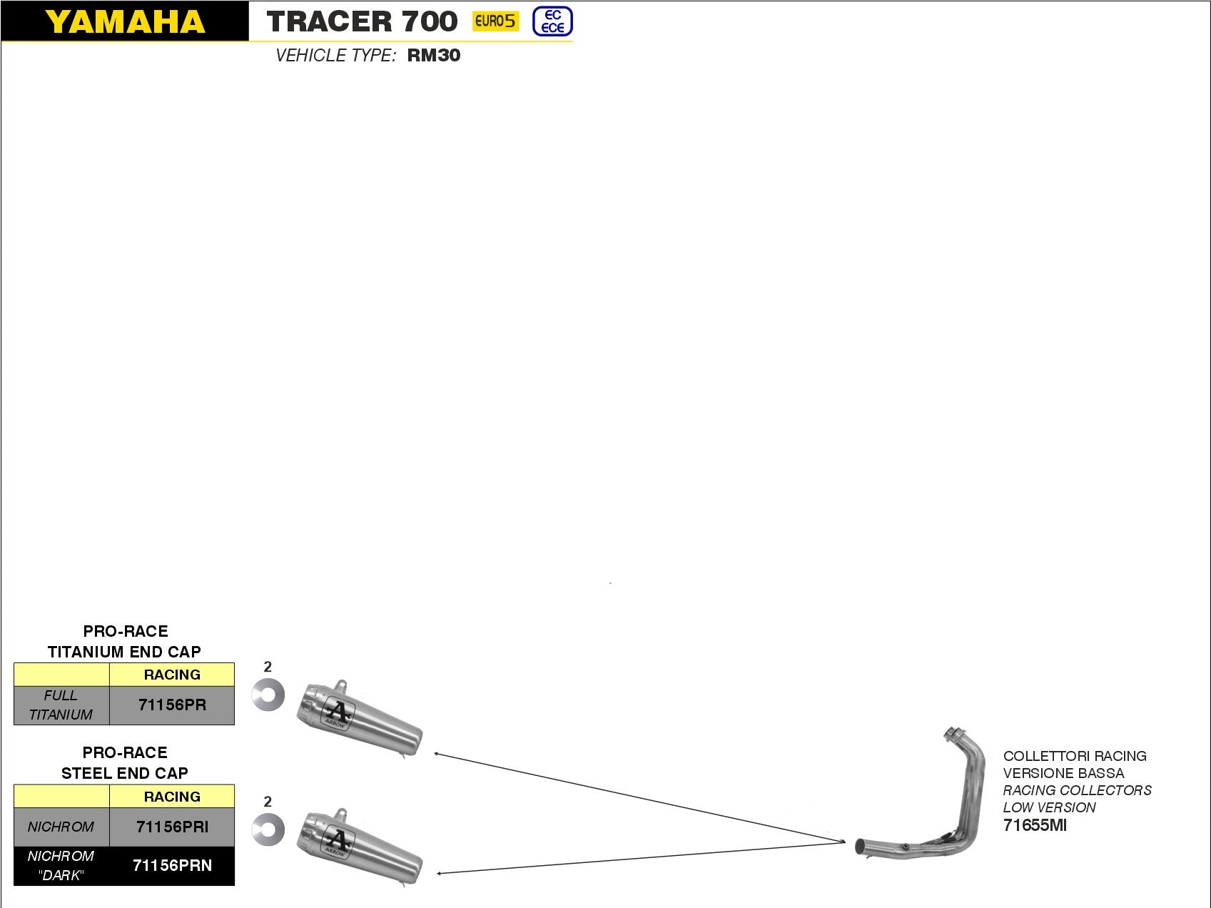 COMPLETE EXHAUST LOW RACING PRO-RACE NICHROM ARROW YAMAHA TRACER 700 20-22