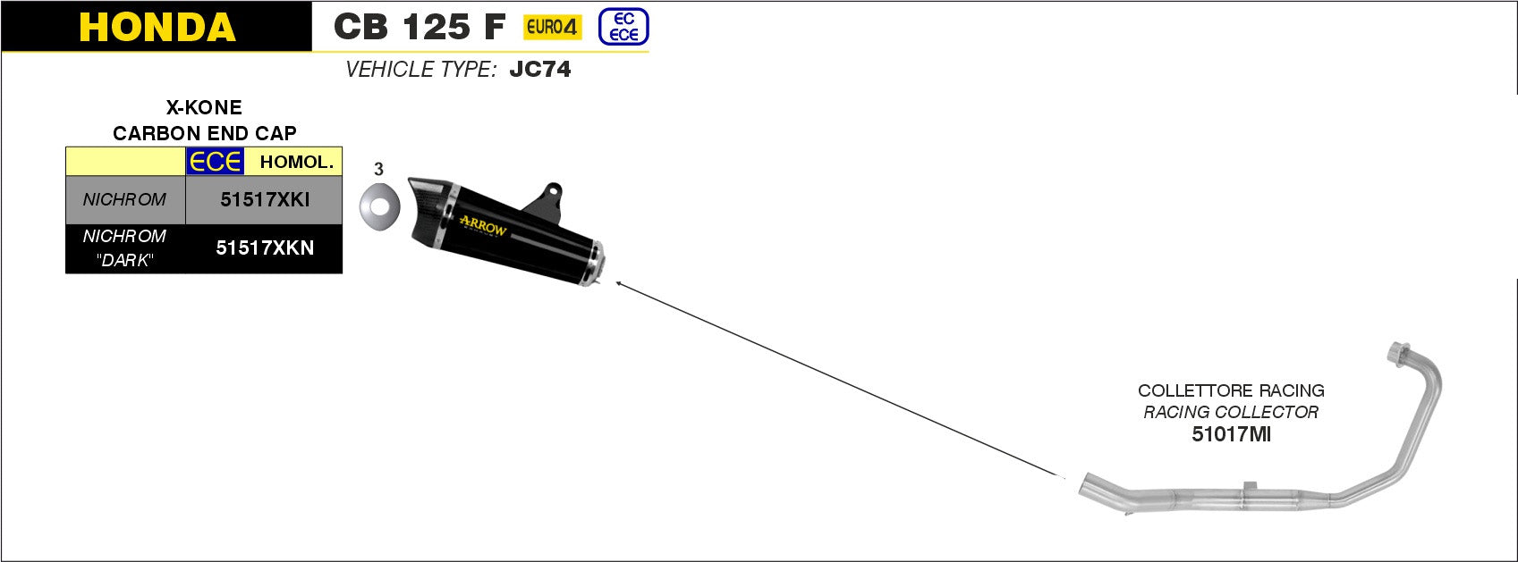 COMPLETE EXHAUST APPROVED X-KONE ARROW HONDA CB 125 F 2017-20