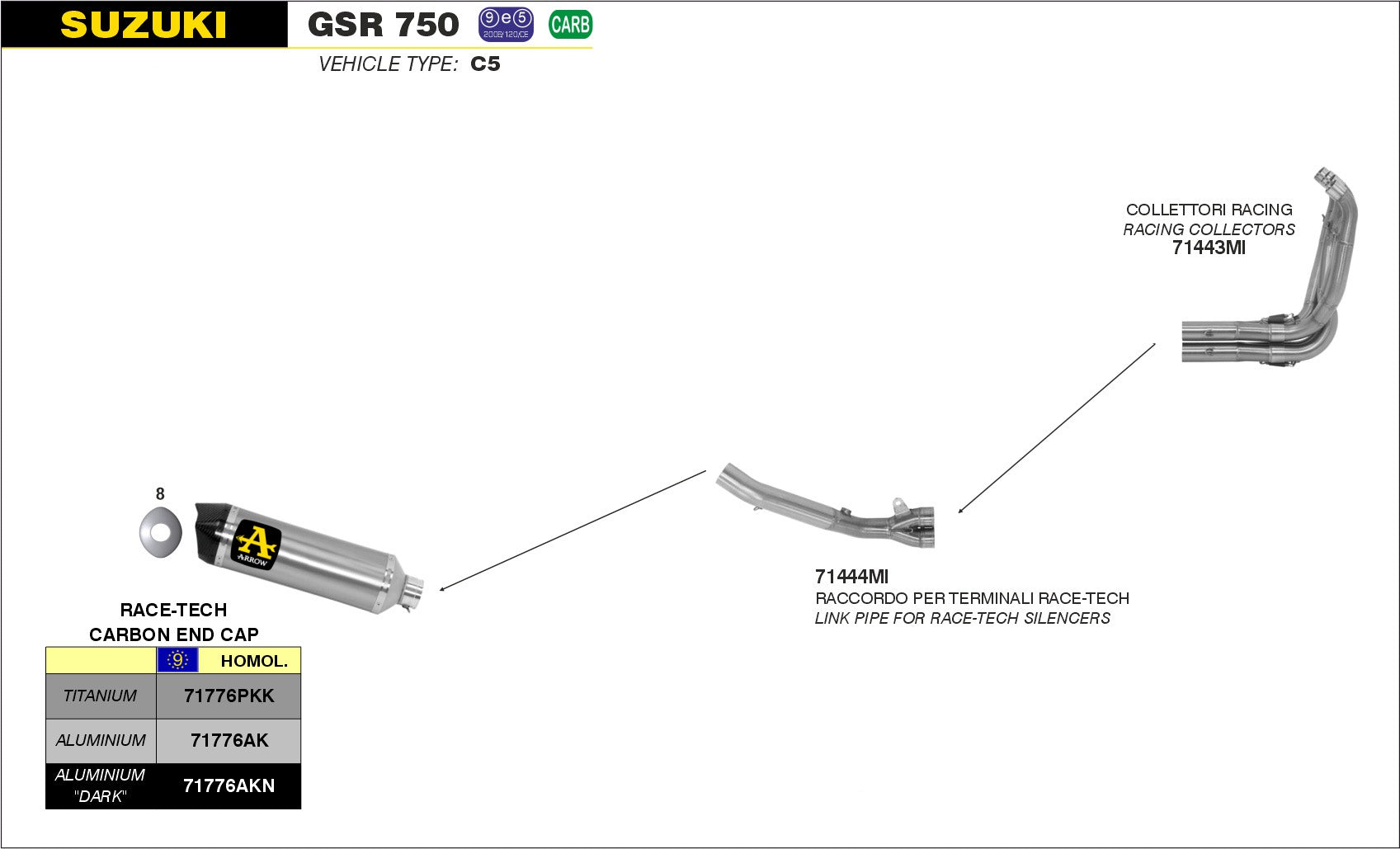 COMPLETE EXHAUST RACE-TECH TITANIUM-CARB ARROW SUZUKI GSR 750 2011-16