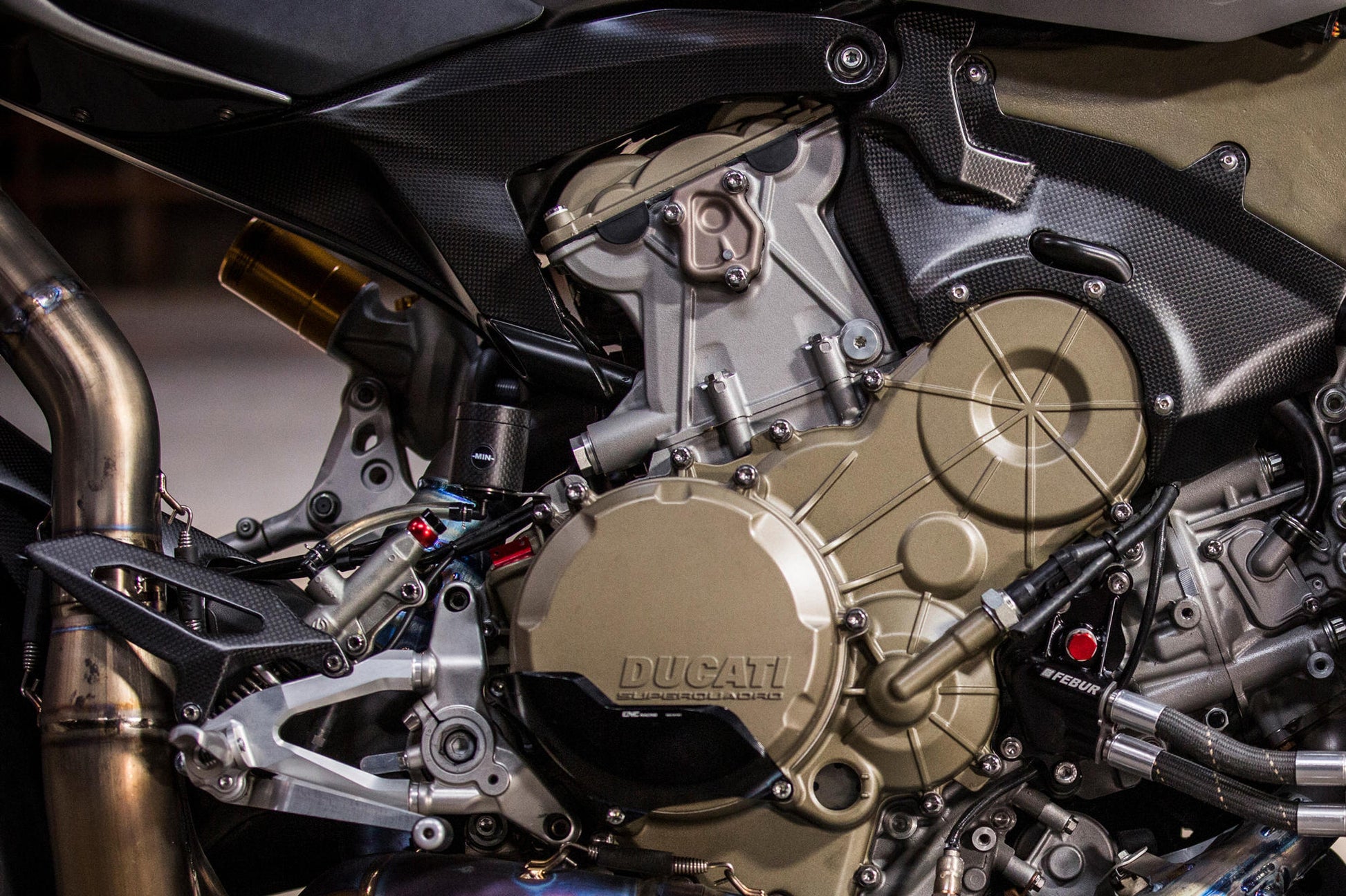 Serbatoio olio freno posteriore / frizione prodotto in carbonio lavorato in autoclave con trama plain e finitura superficiale opaca o lucida.