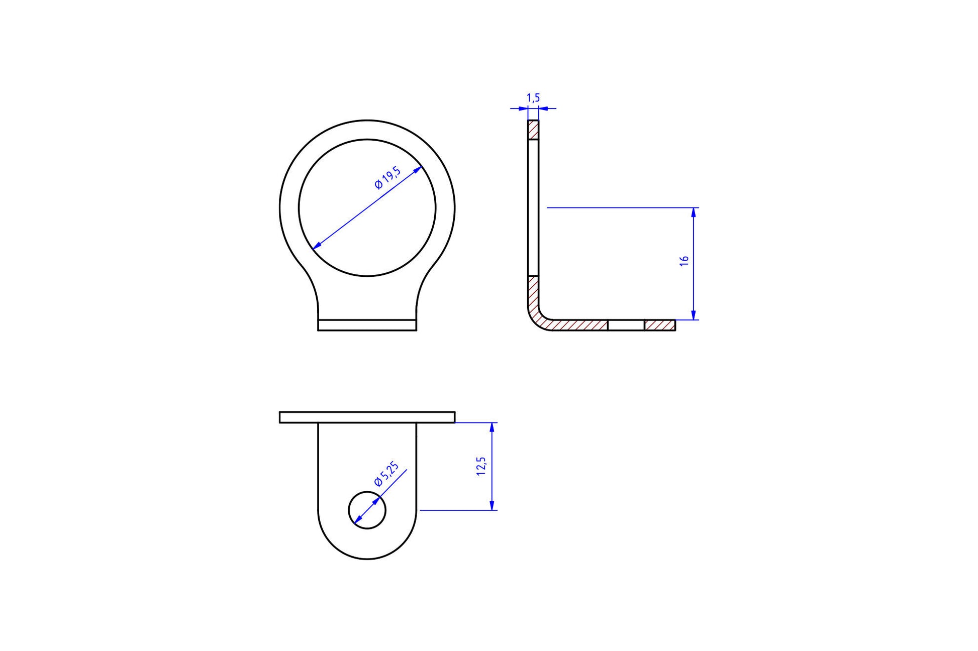 Staffa in acciaio Inox AISI 304 per il montaggio dei nostri serbatoi fluido freno e frizione.