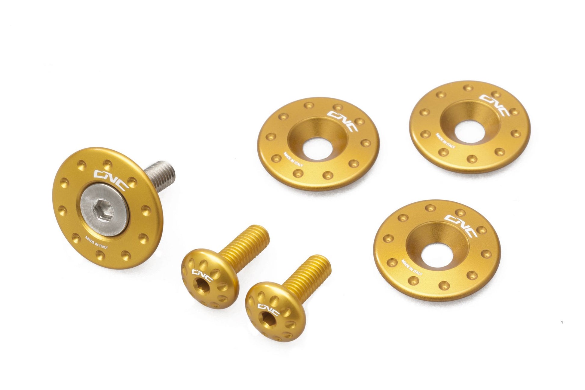 Tappi convogliatori realizzati dal pieno in lega leggera con successiva anodizzazione superficiale. Il kit è composto da 2 viti e 4 tappi, nelle misure precise per adattarsi ai vari fori del telaio.