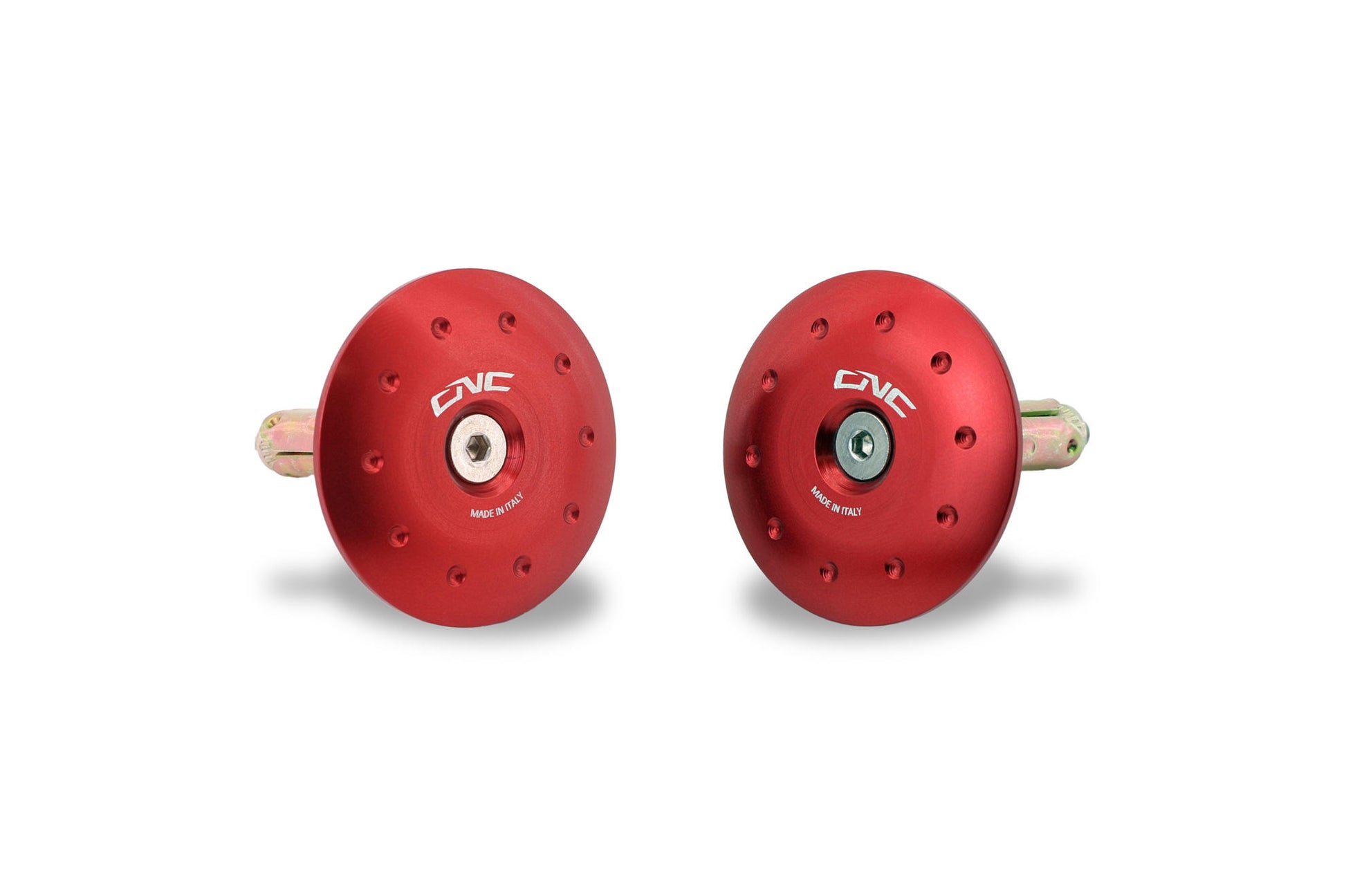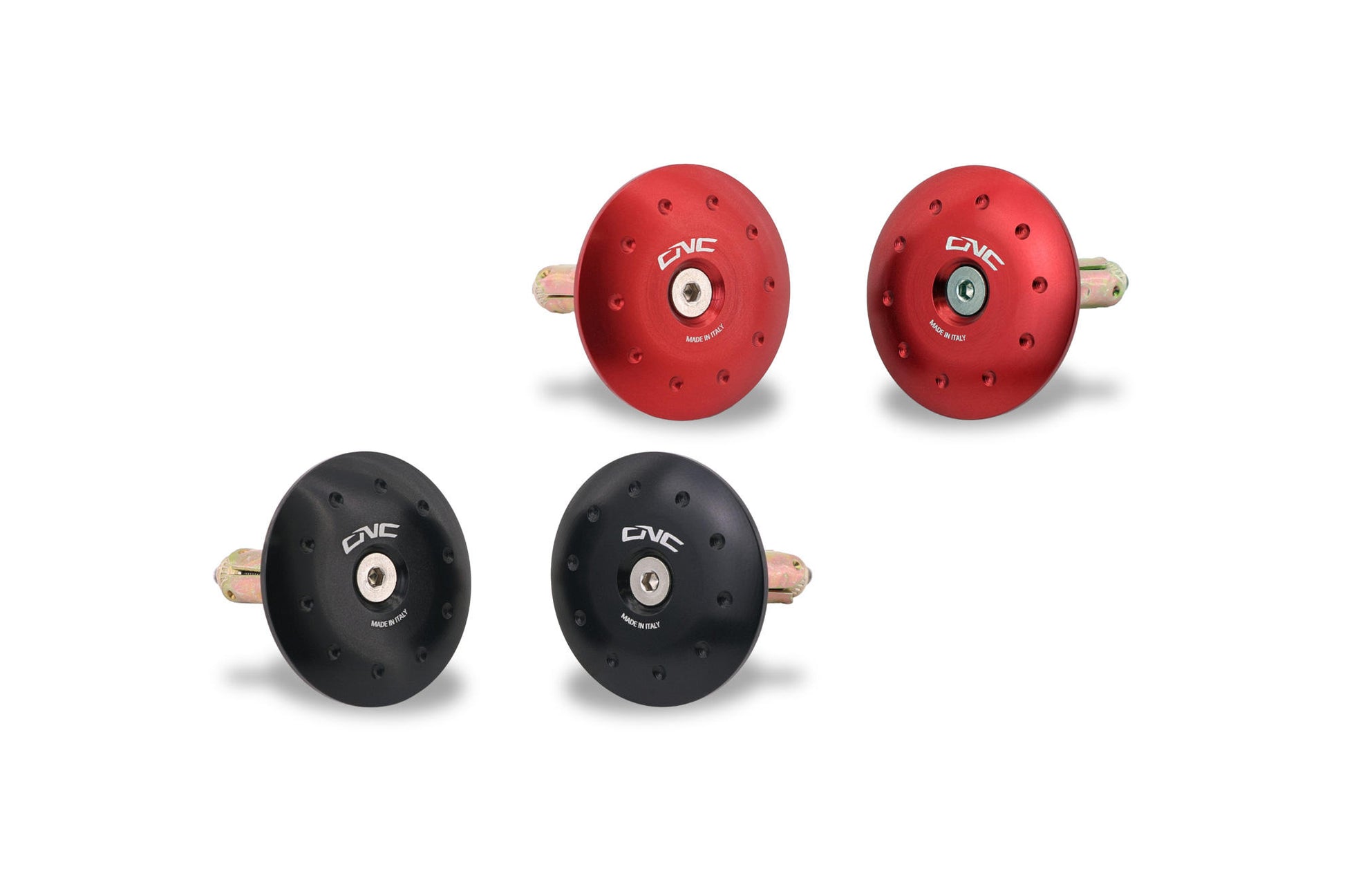 Tappi pedane realizzati dal pieno in lega leggera con successiva anodizzazione superficiale.