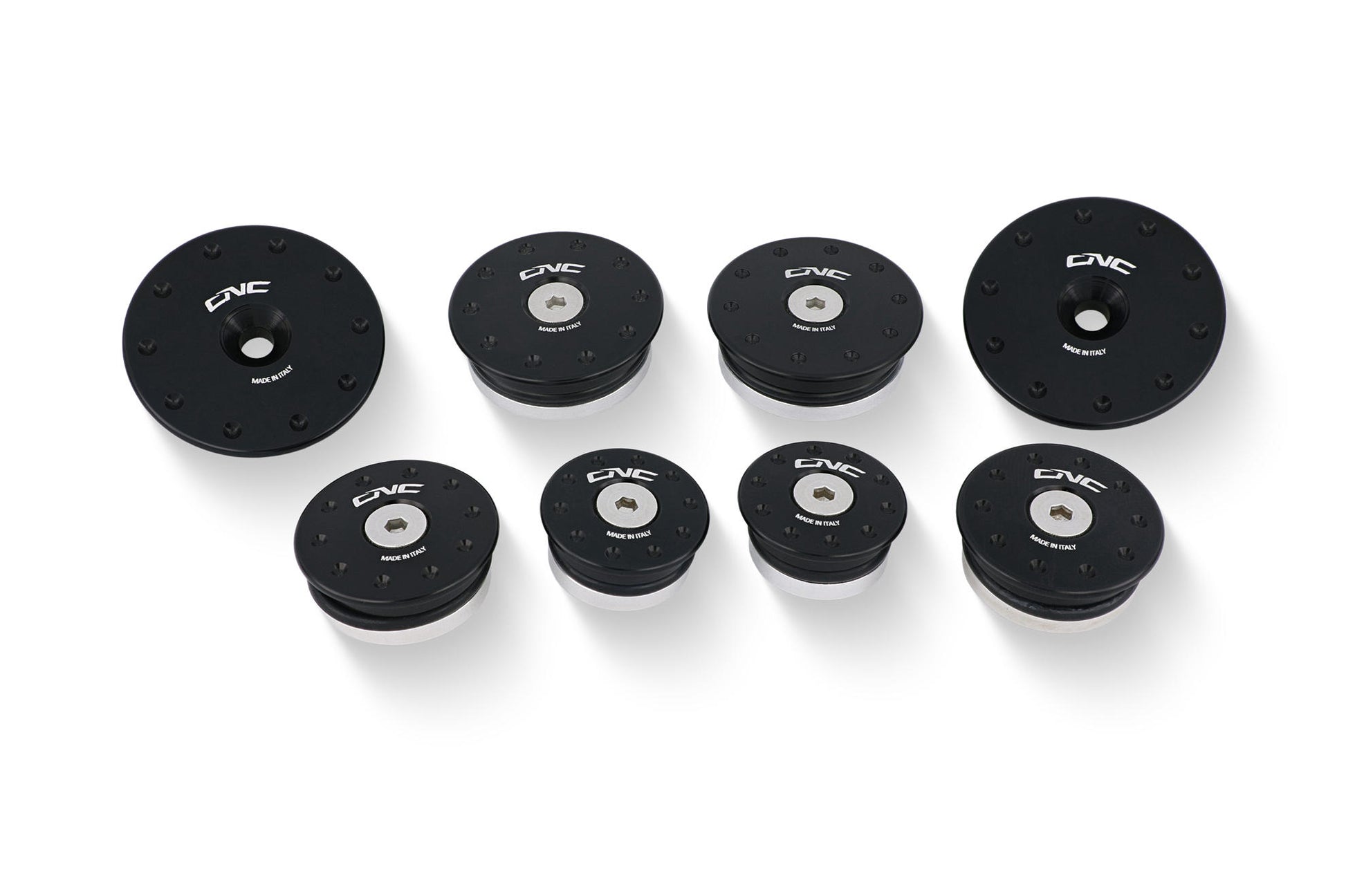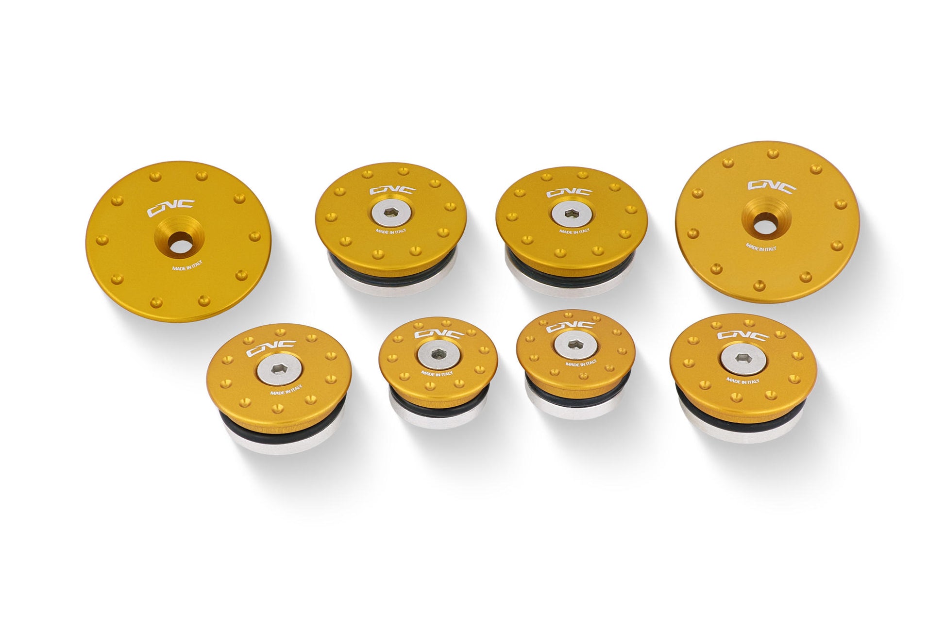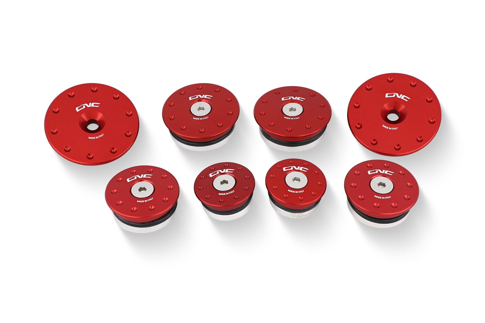 Tappi telaio realizzati dal pieno in lega leggera con successiva anodizzazione superficiale. Il kit è composto da 8 tappi ognuno nelle misure precise per adattarsi ai vari fori del telaio.