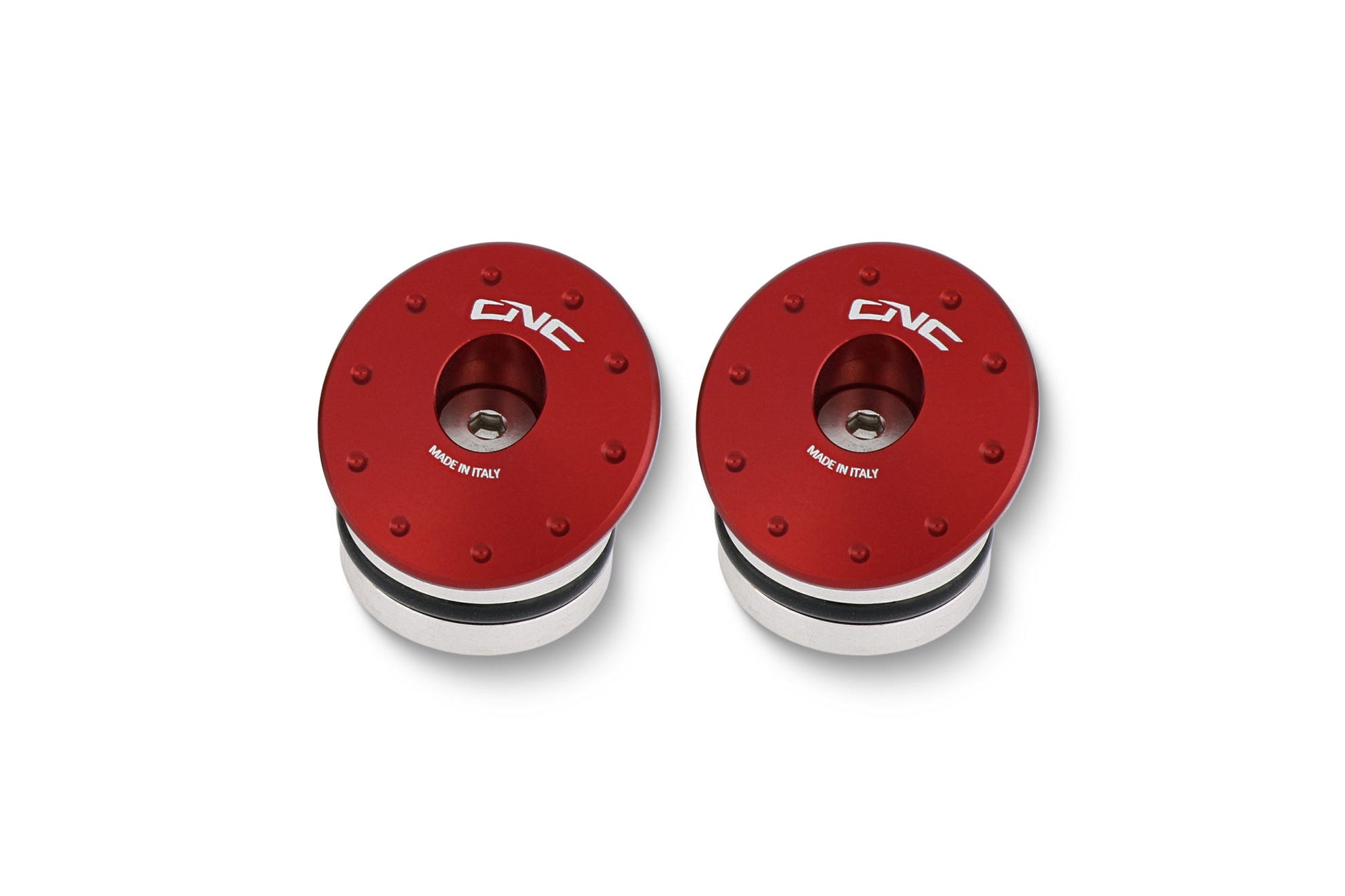Tappi telaio realizzati dal pieno in lega leggera con successiva anodizzazione superficiale.