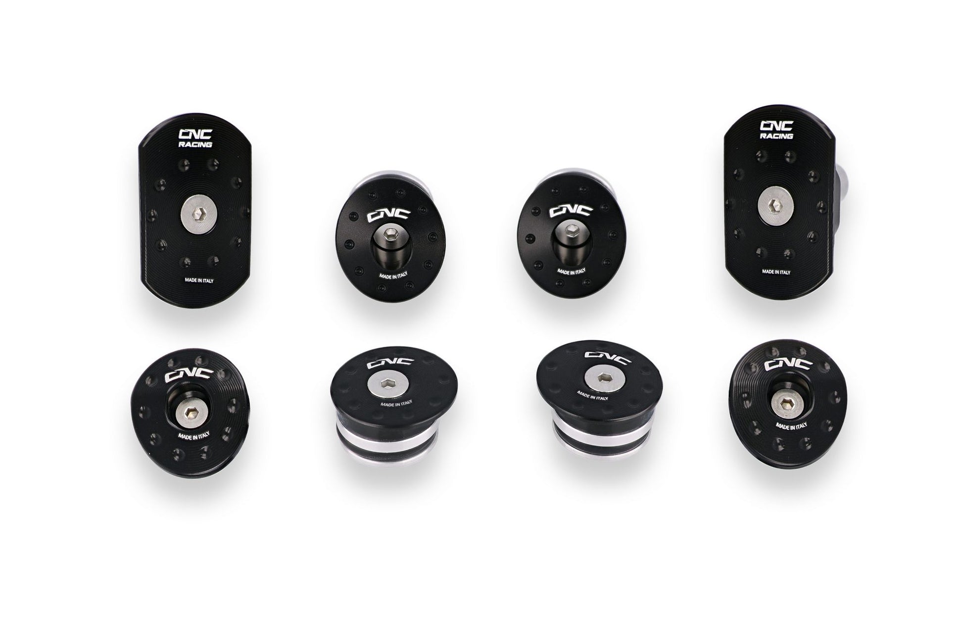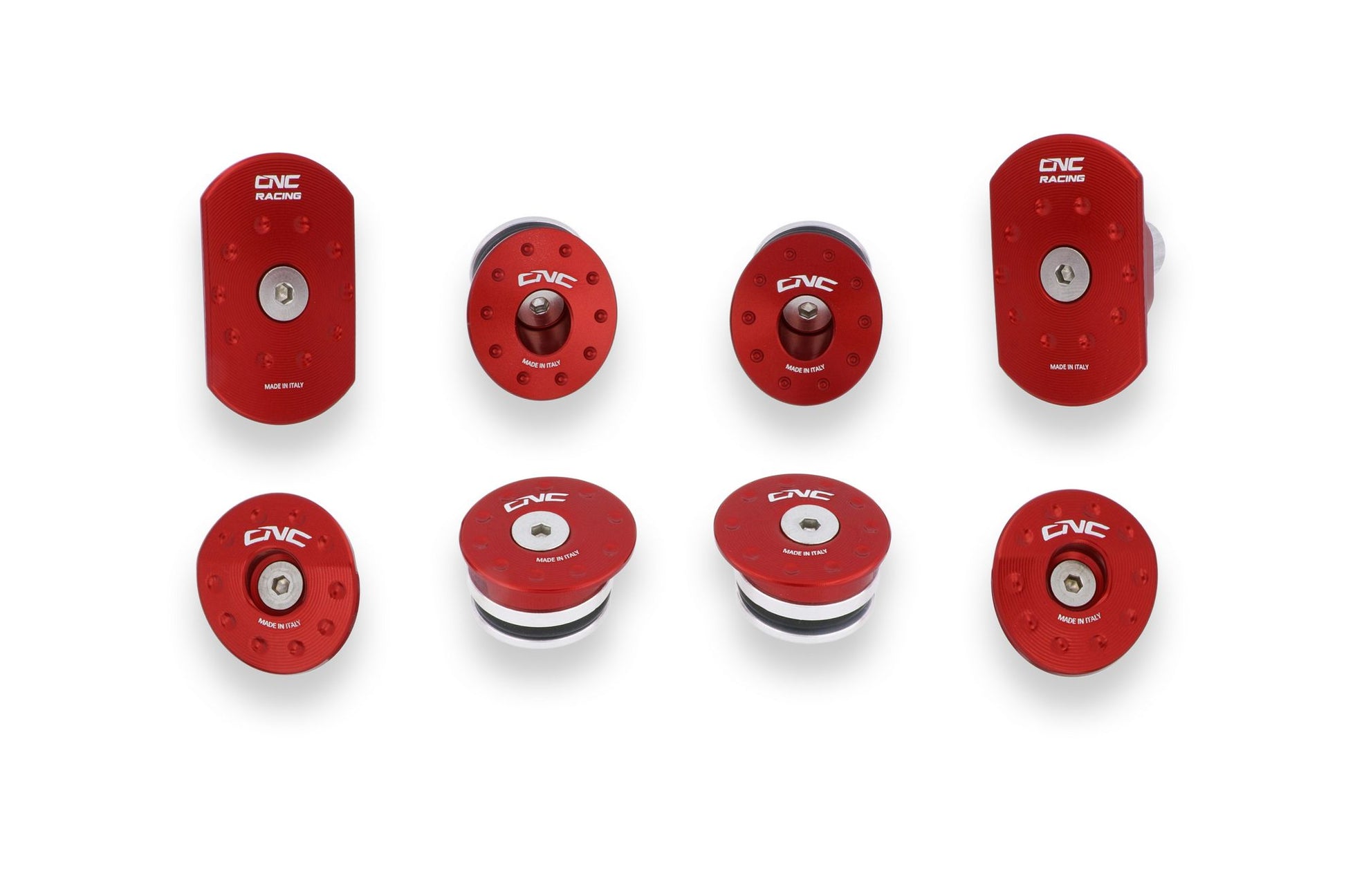 Il kit è composto da 8 tappi nelle misure precise per adattarsi ai vari fori del telaio. Ogni tappo è completo di oring di tenuta e controdisco in alluminio.