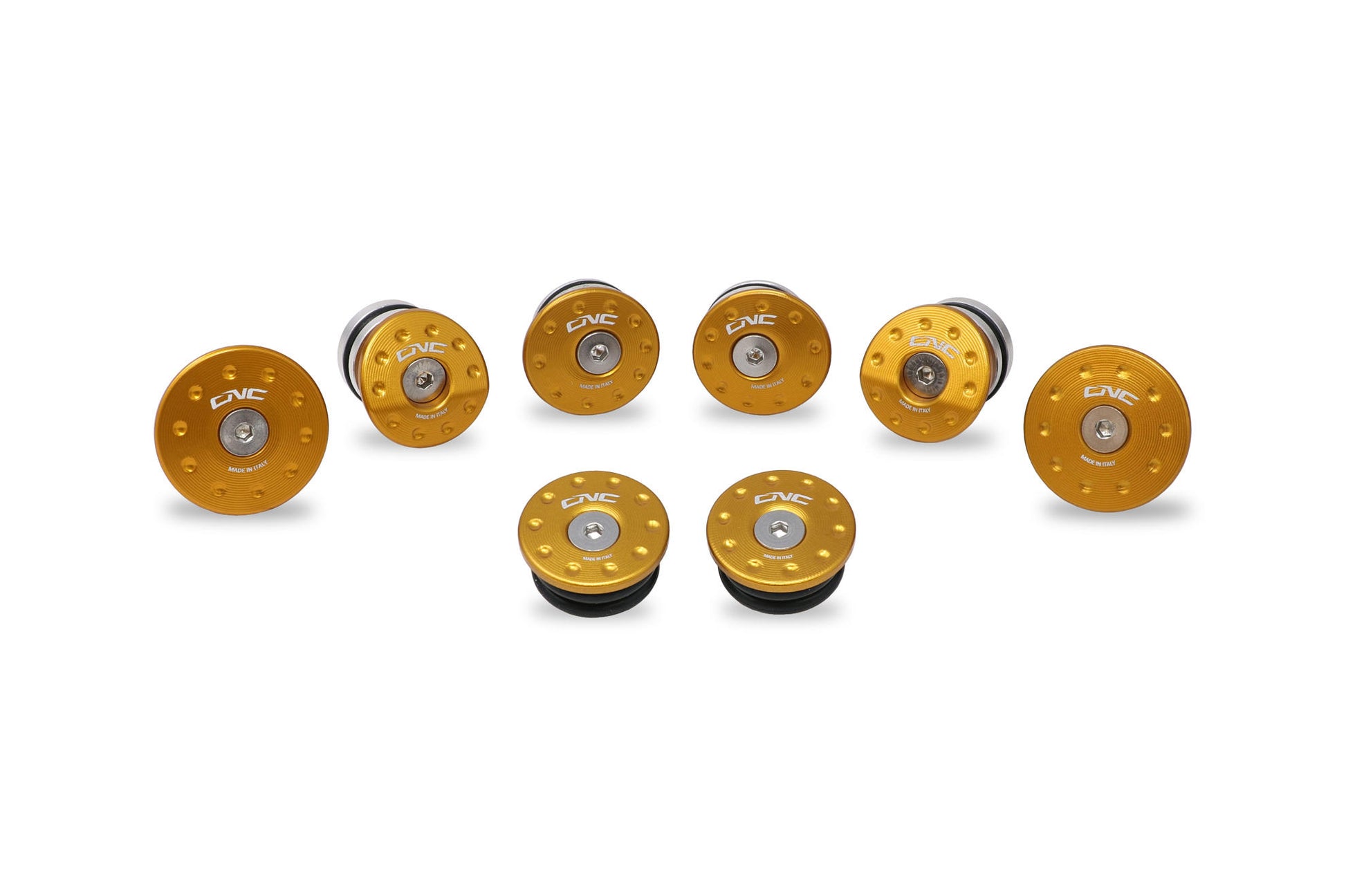 Il kit è composto da 8 tappi in lega leggera ricavati del pieno tramite l'utilizzo di macchine cnc e da tutto il necessario per l'installazione.