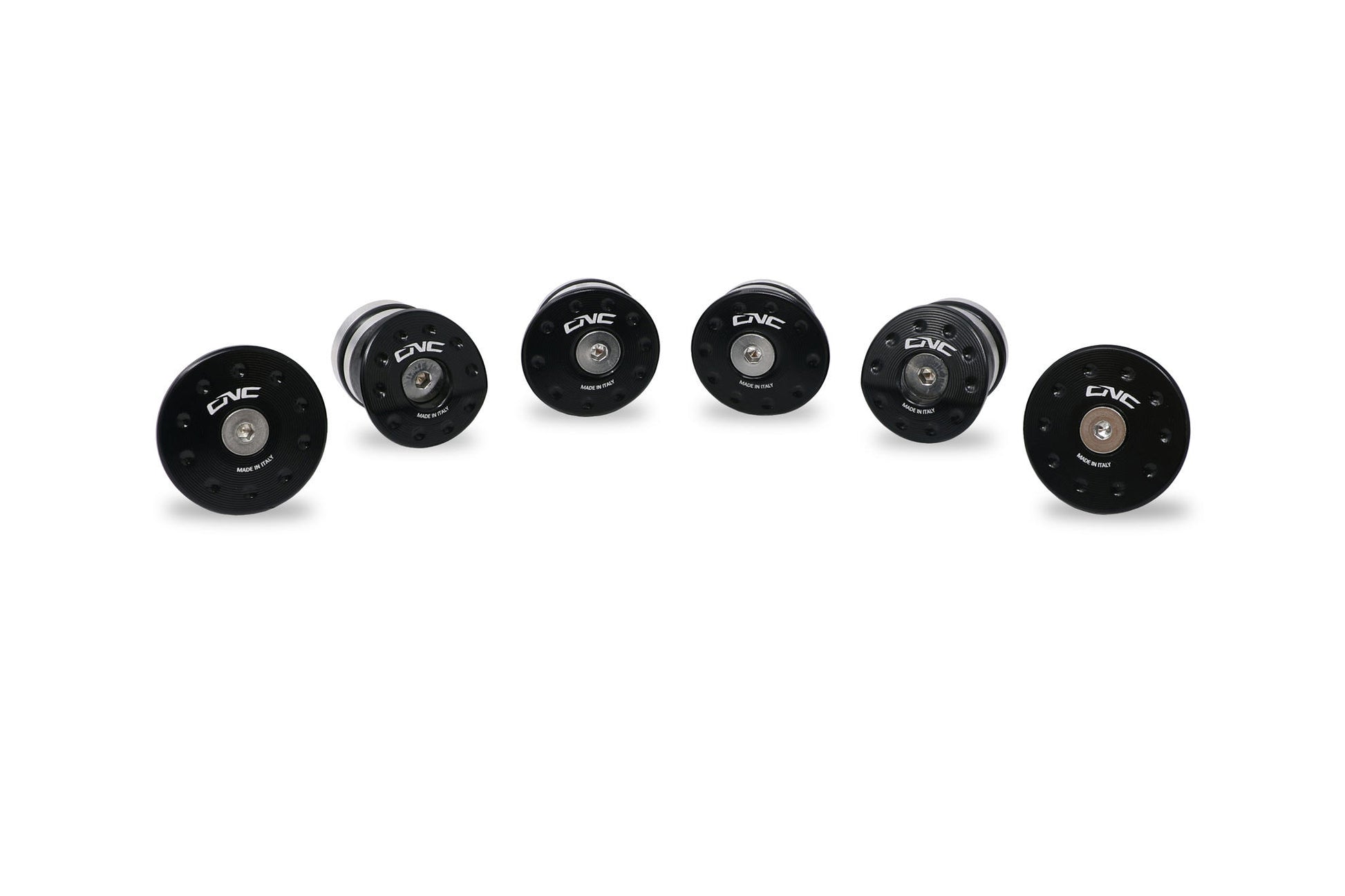 Il kit è composto da 6 tappi in lega leggera ricavati del pieno tramite l'utilizzo di macchine cnc e da tutto il necessario per l'installazione.