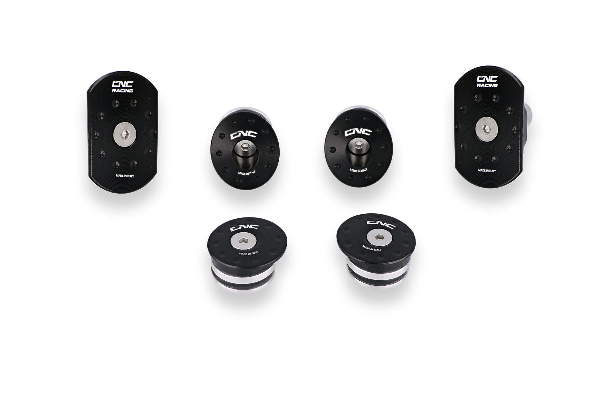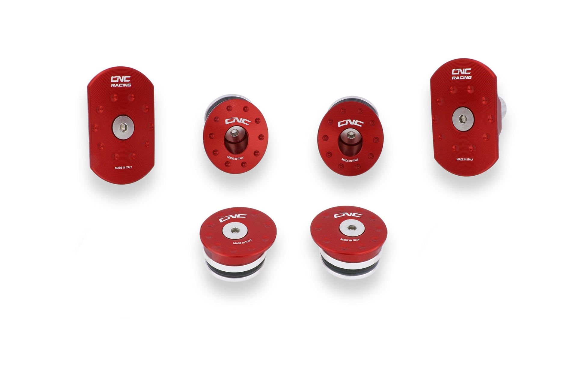 Tappi telaio realizzati dal pieno in lega leggera con successiva anodizzazione superficiale.