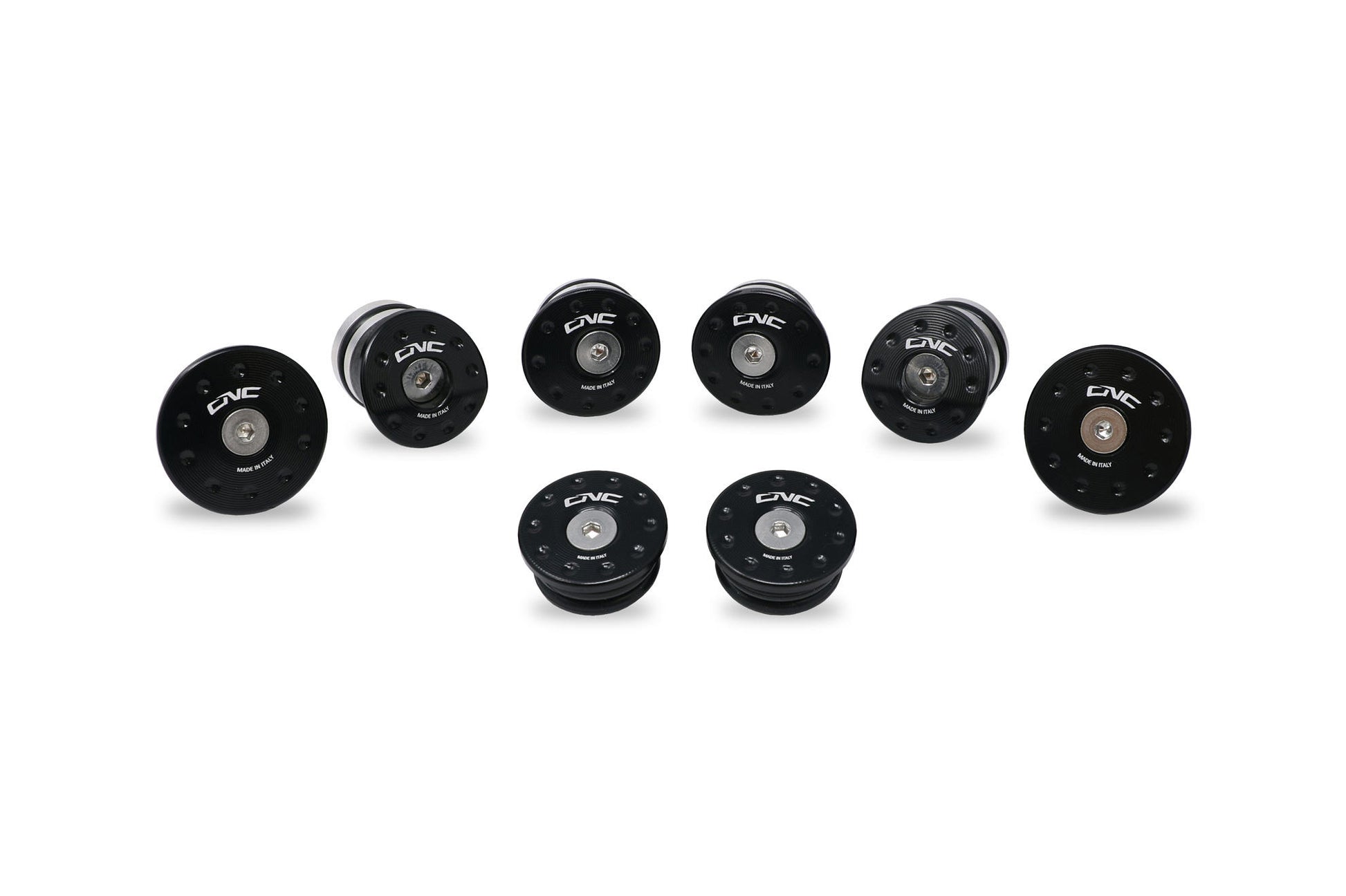 Il kit è composto da 8 tappi in lega leggera ricavati del pieno tramite l'utilizzo di macchine cnc e da tutto il necessario per l'installazione.