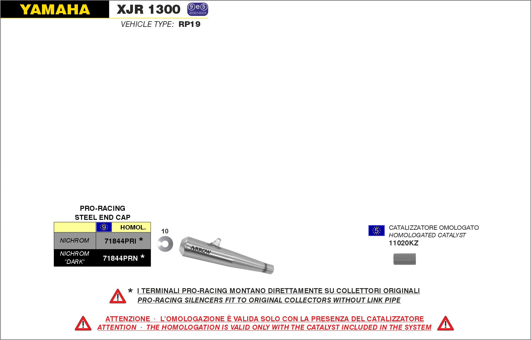 SILENCER APPR. E5+E9 PRO-RACING WITH FONDELLO INOX ARROW YAMAHA XJR 1300 07-17
