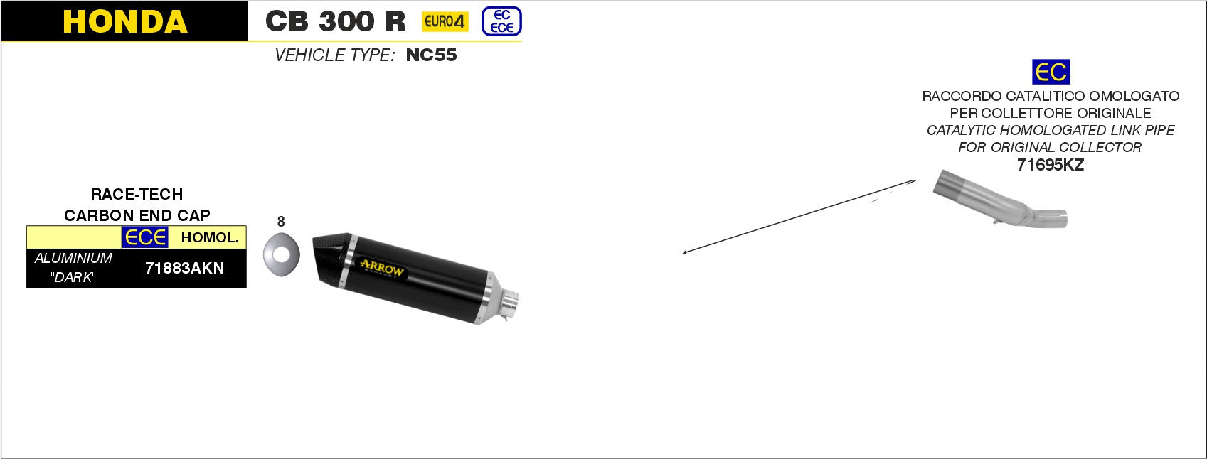SILENCER RACE-TECH ALUMINUM BLACK-CARB ARROW HONDA CB 300 R 2018-20