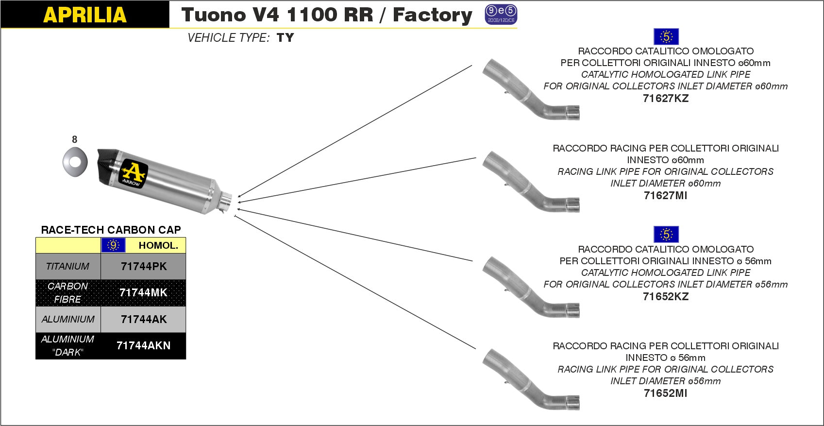 SILENCER RACE-TECH APP TIT-CARB Ø 60MM ARROW APRILIA TUONO V4 1100 15-16