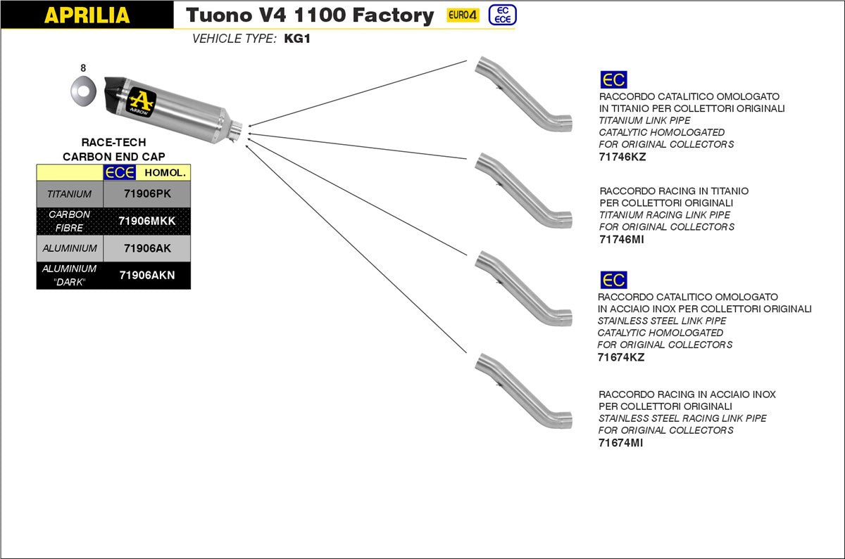 SILENCER RACE-TECH TITANIUM-CARB ARROW APRILIA TUONO V4 1100 2019-20