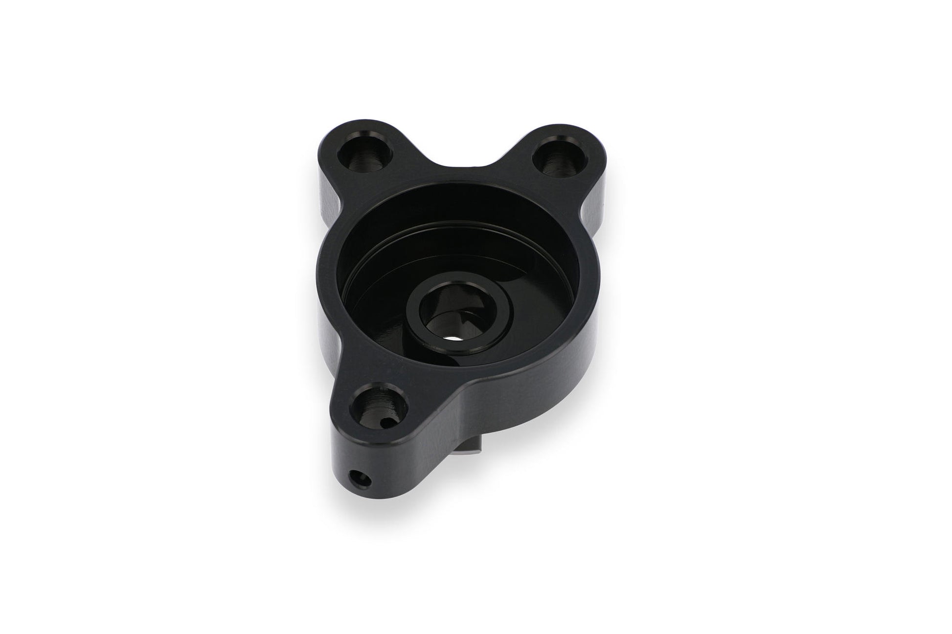 Base per attuatore frizione Ducati lavoratadal pieno in lega leggera tramite macchine a controllo numero, e successiva anodizzazione colorata superficiale.
