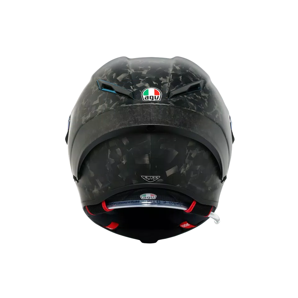 Le sue forme e le prese d’aria in metallo sono studiate in galleria del vento e testate dagli atleti AGV per avere la migliore penetrazione aerodinamica e la massima stabilità alle alte velocità, anche grazie all’innovativo profilo del PRO Spoiler posteriore, in Carbonio Forgiato, ancora più leggero.