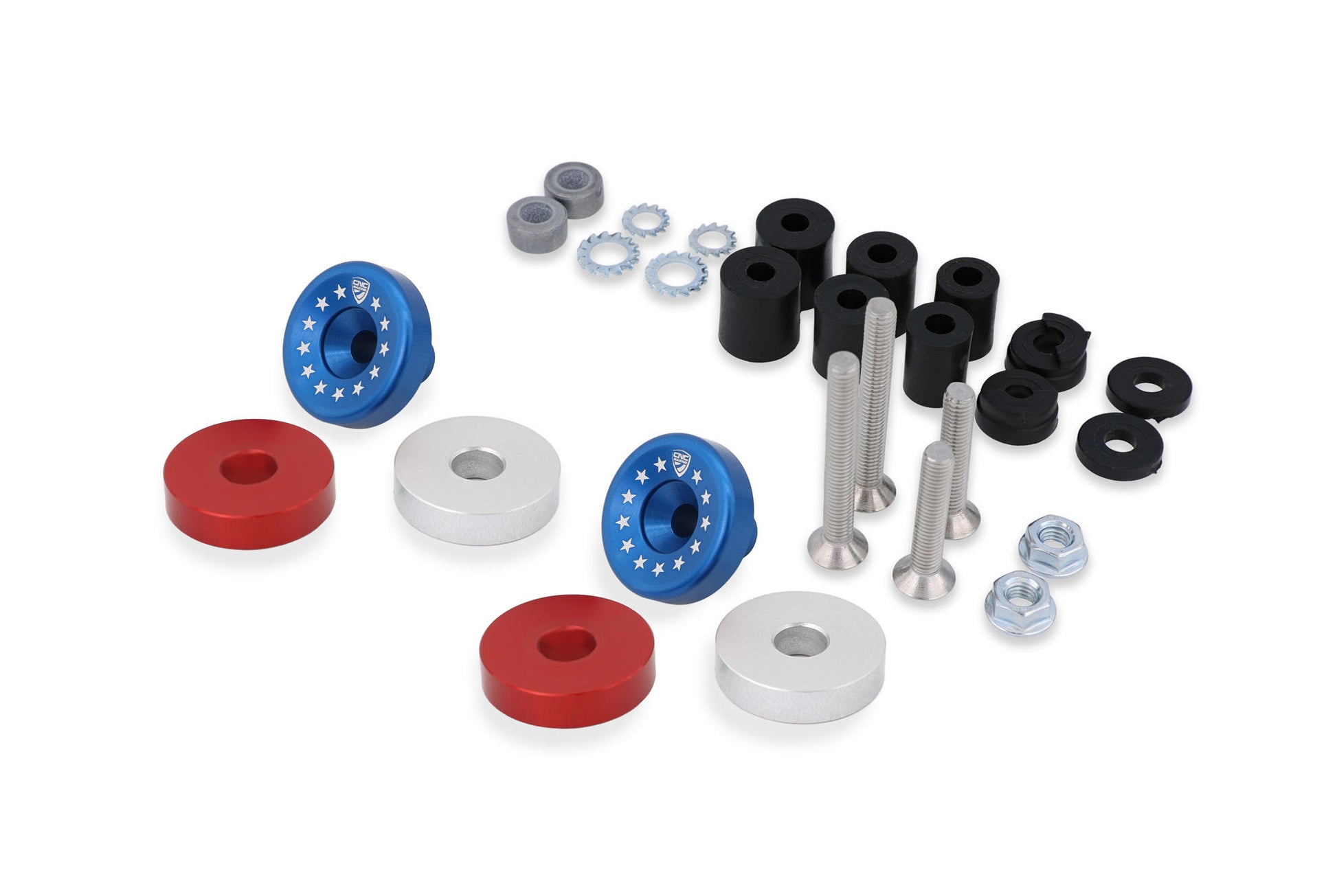 Il kit viene fornito della viteria necessaria per il montaggio sui più comuni tipi di manubri.