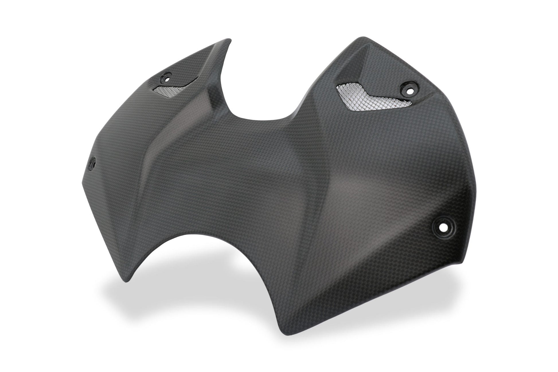 Cover serbatoio carburante per la copertura del vano batteria della Ducati Streetfighter V4 realizzato in carbonio con lavorazione in autoclave con l'utilizzo esclusivo di fibre di carbonio al 100%. Identico al prodotto di primo equipaggiamento, il particolare viene fornito con finitura superficiale opaca.
