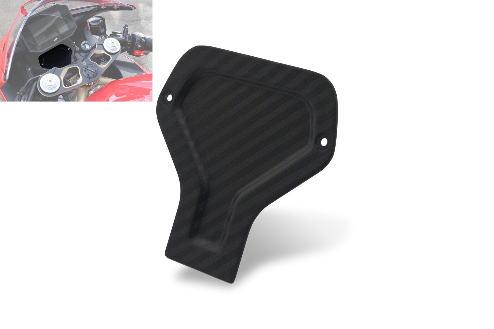 Cover supporto faro anteriore realizzato con l'utilizzo esclusivo di fibre di carbonio Twill 285 gr/mq in superficie e 630 gr/mq interna.