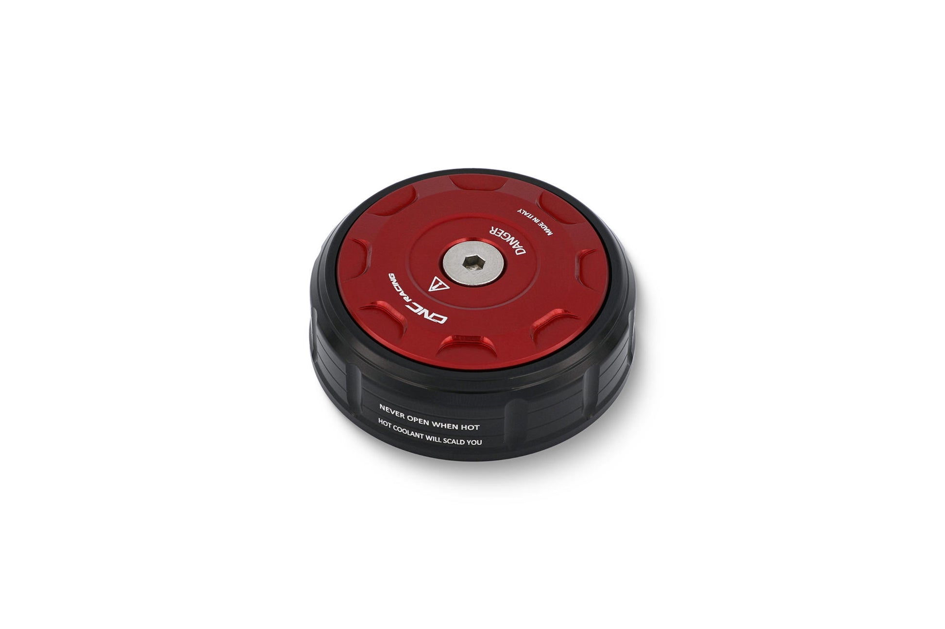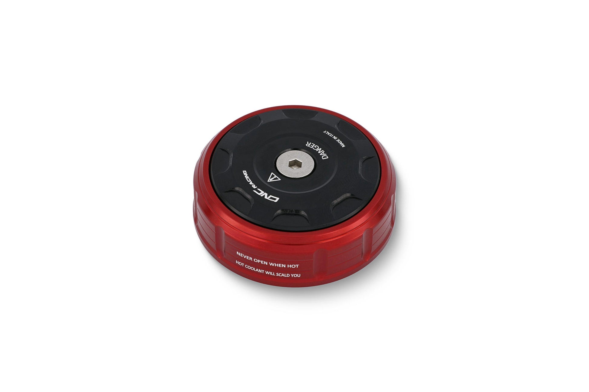 Cover tappo radiatore, lavorato dal pieno in lega leggera con successivo trattamento di anodizzazione superciaile.
