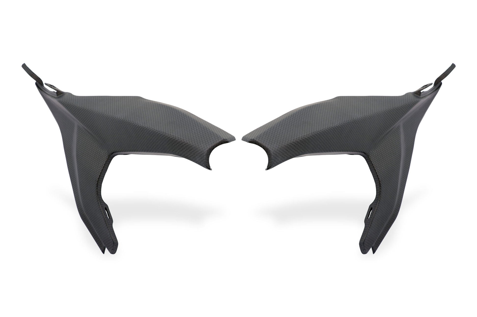 Fianchetti laterali telaietto posteriore per la Ducati Streetfighter V2 realizzati in carbonio trama twill con lavorazione in autoclave.