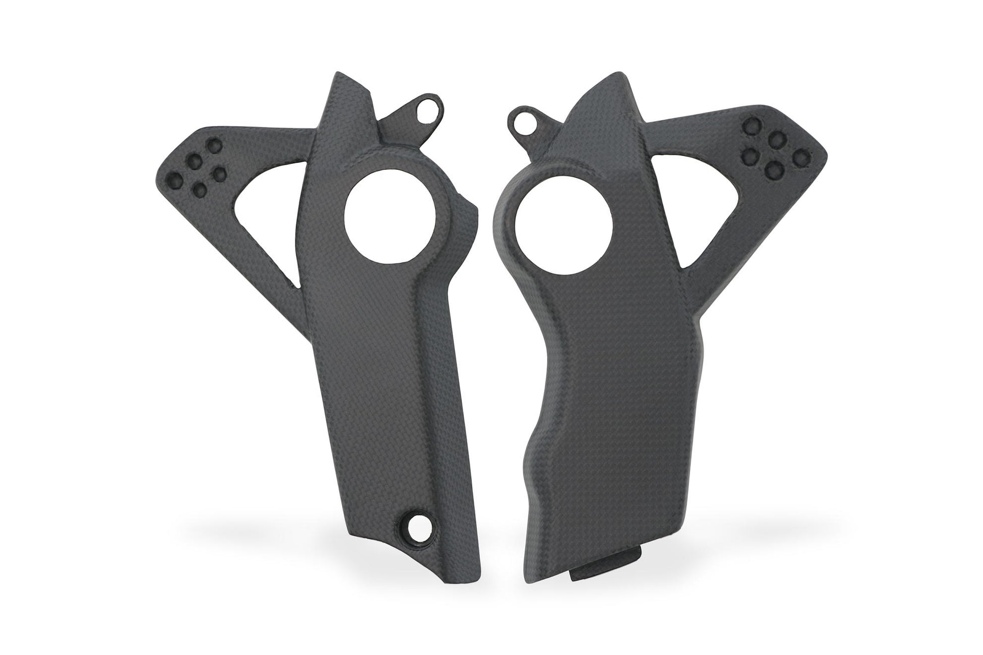 Cover piastre telaio inferiori Ducati DesertX realizzate in carbonio trama twill con lavorazione in autoclave.