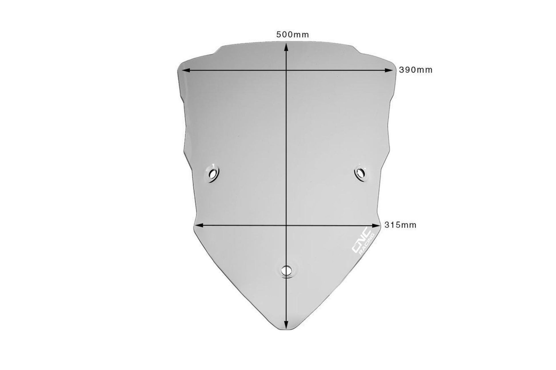 Cupolino Touring realizzato in PMMA di 4 mm per garantire robustezza e massima trasparenza. È più protettivo dell'originale grazie alla maggiore superficie ed al design del profilo.