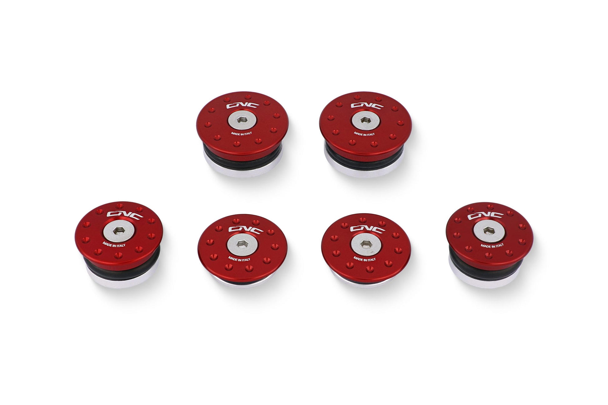 Kit tappi telaio per Ducati Hypermotard 950 realizzati dal pieno in lega leggera con successiva anodizzazione superficiale.