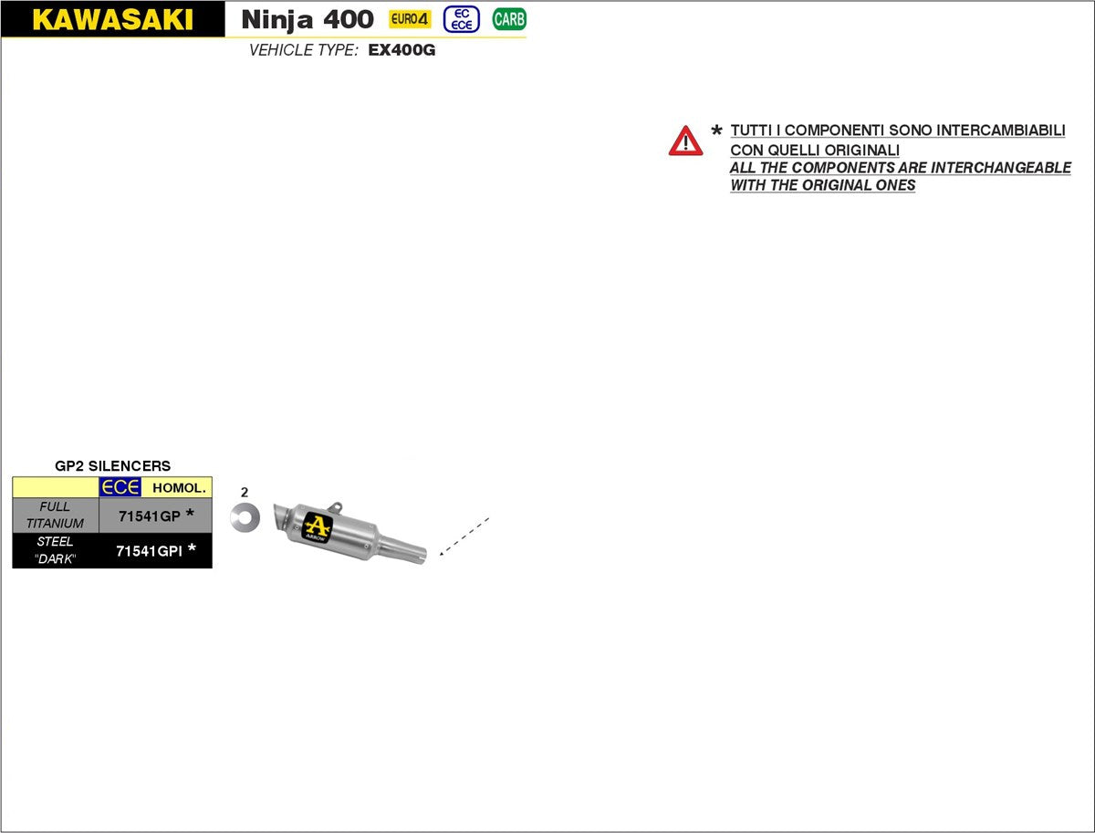 SCARICO MARMITTA GP2 FULL TITANIO ARROW KAWASAKI NINJA 400 2018-2021