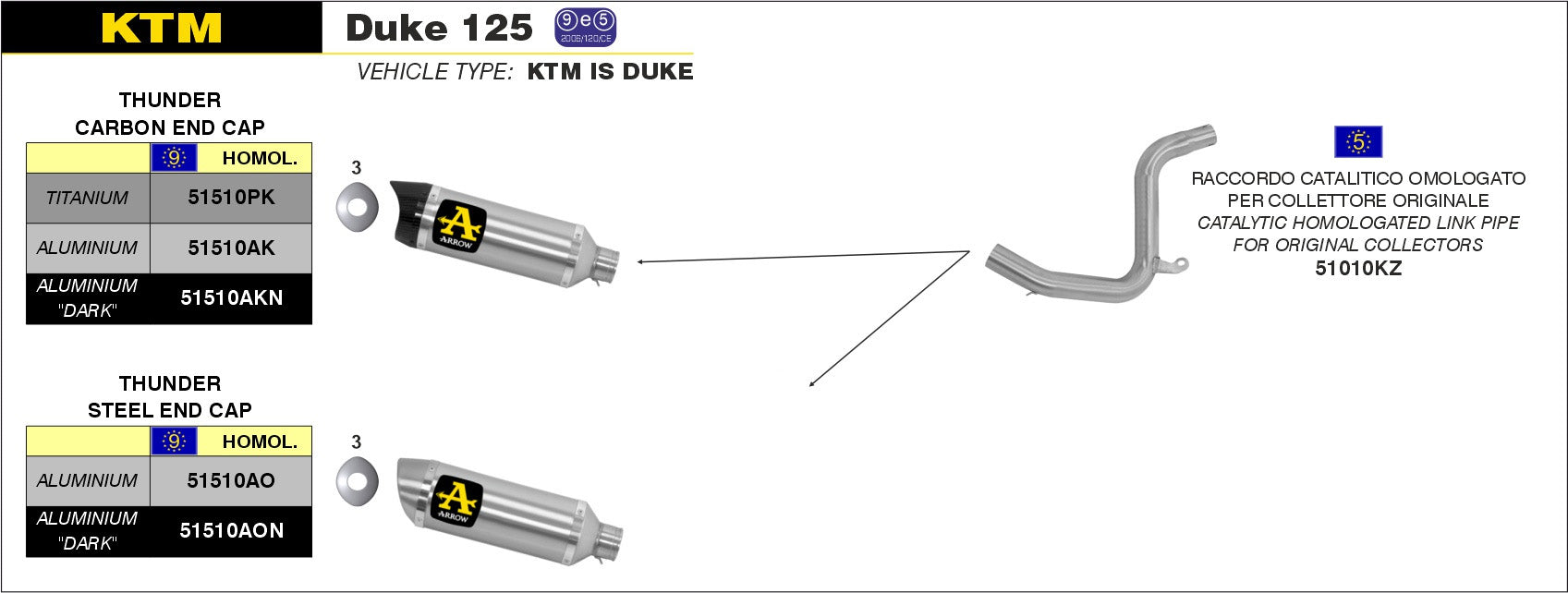 SCARICO MARMITTA OMOLOGATO E5+E9 TITANIO-CARBONIO ARROW KTM DUKE 125 11-16