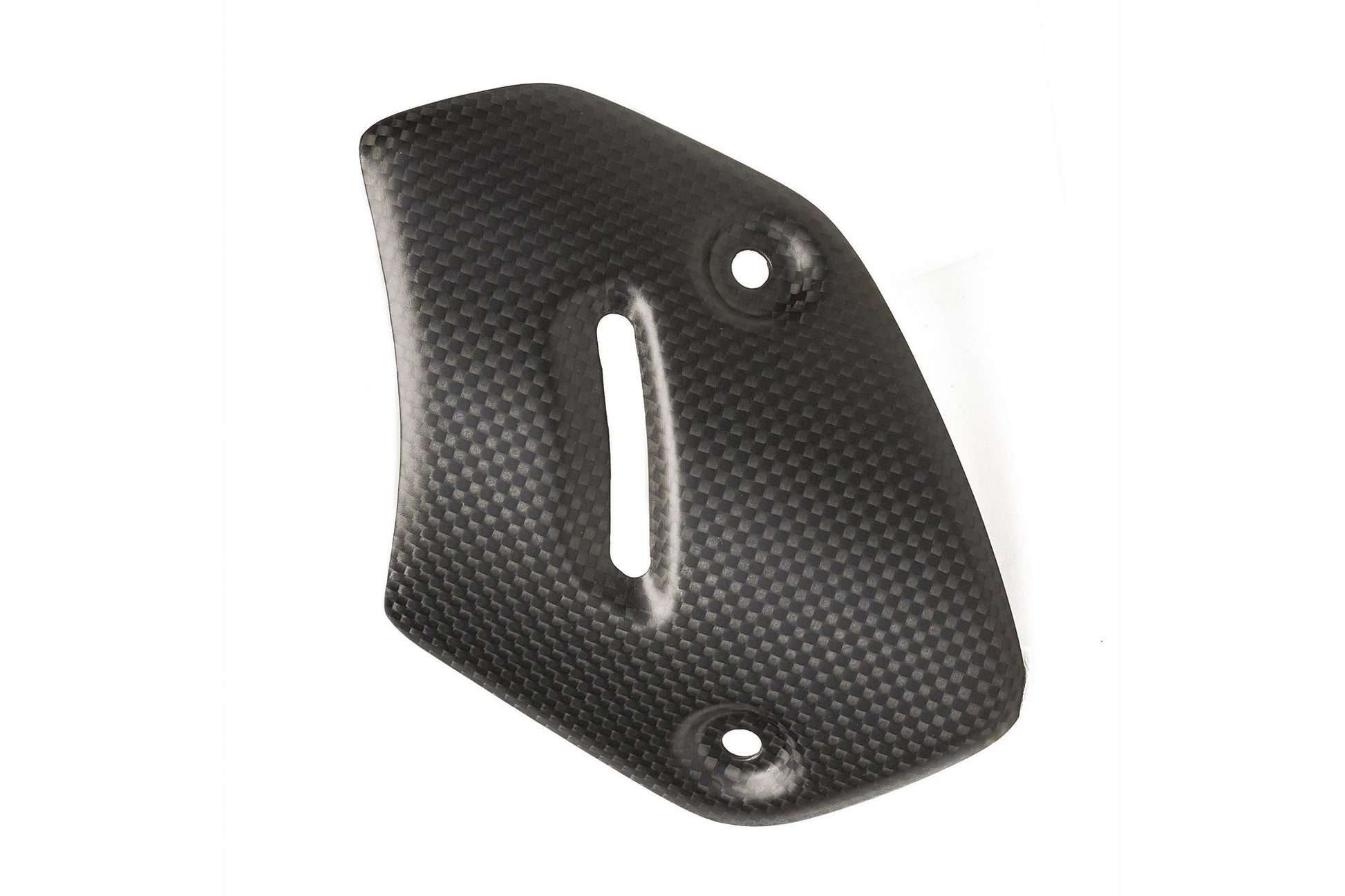 Paracalore silenziatore scarico in carbonio con trama plain e finitura opaca; prodotto in carbonio 100% lavorato in autoclave, sostituisce senza modifiche l'originale in materiale plastico.