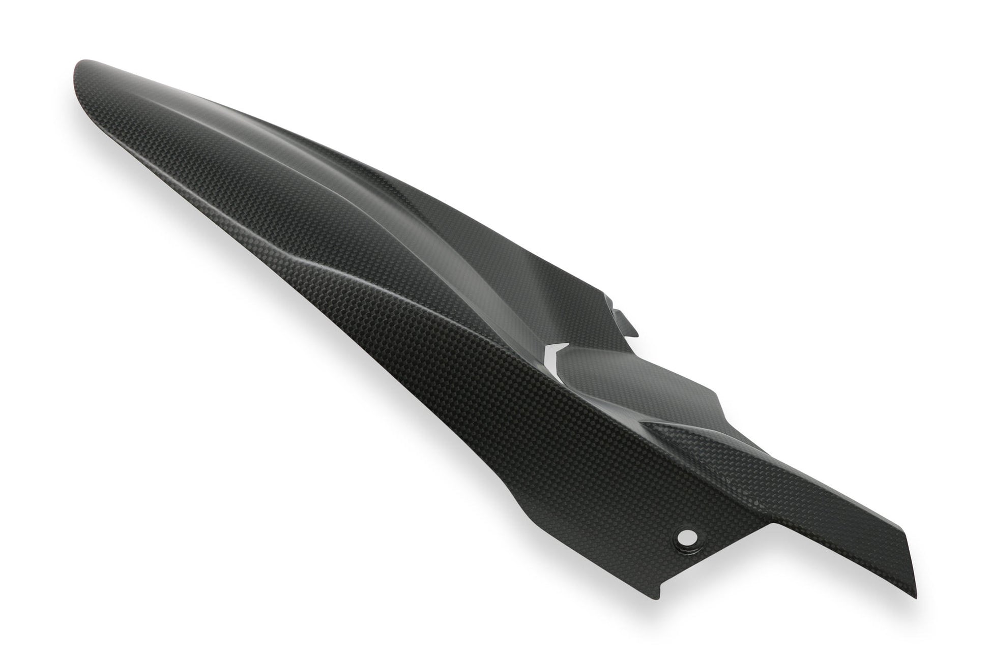Parafango posteriore costruito tramite processo in autoclave con esclusivo utilizzo di fibre di carbonio e verniciatura a mano.