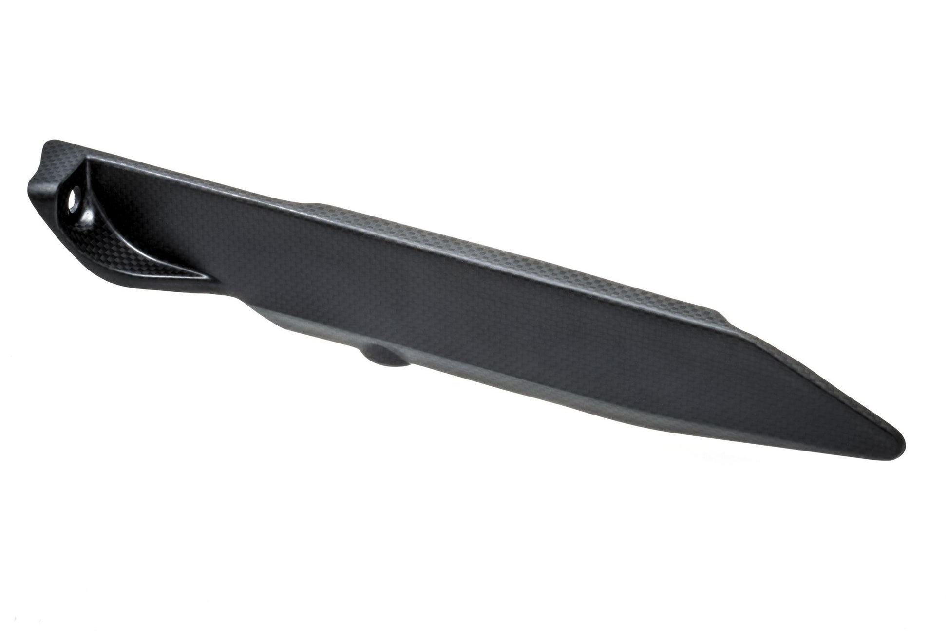 Protezione superiore catena realizzato in in carbonio con trama plain e finitura opaca; prodotto in carbonio 100% lavorato in autoclave, sostituisce senza modifiche l'originale in materiale plastico.