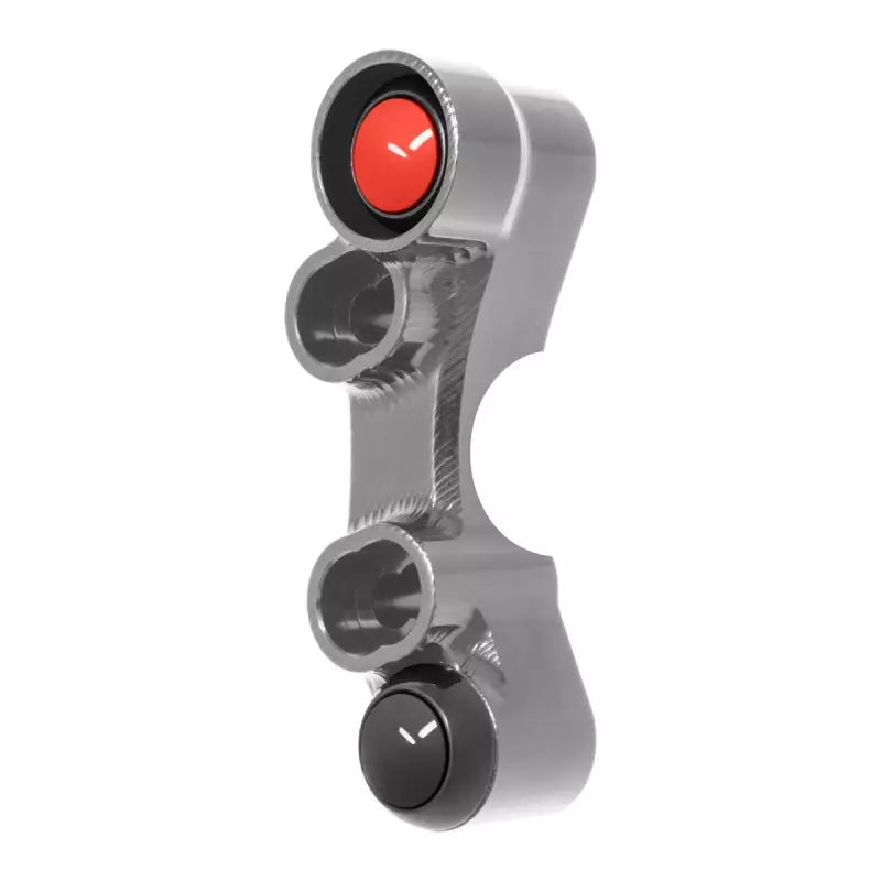ATTENZIONE: questa pulsantiera è progettata per essere montata sulla pompa del freno al posto del bracciale originale. È dotata di una foratura universale che consente il montaggio sia su pompe freno con fori di fissaggio allineati, sia su quelle con fori disallineati.