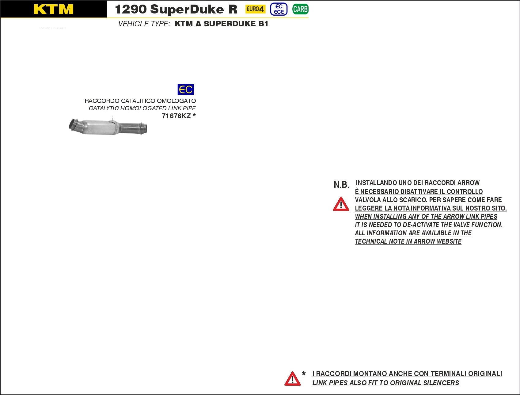 RACCORDO CENTRALE OMOLOGATO EURO4 EC ARROW KTM 1290 SUPERDUKE 2017-19